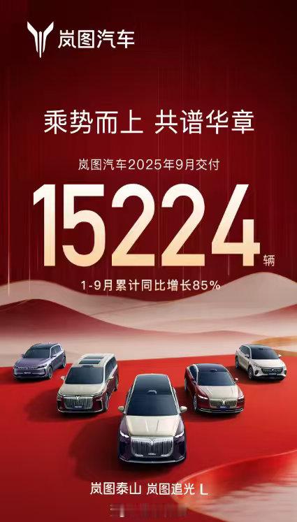 停车的时候随手其他了一下,发现岚图汽车9月战报已经发布:月交付量15224辆,同比增长52%。