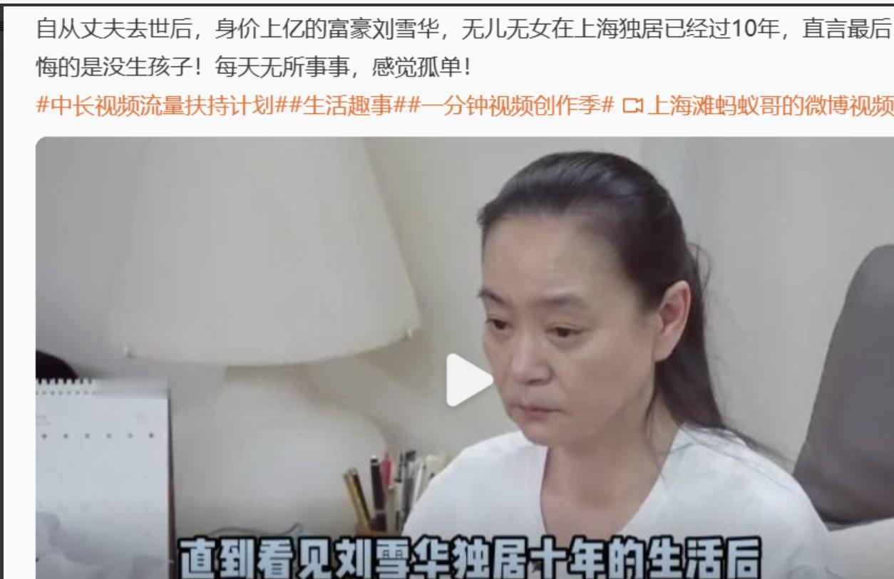 [微风]节目中,有人问刘雪华最大的遗憾是什么?她说是无儿无女,每天无所事事,感觉孤单!虽然身家亿万,但自从丈夫去世后,在豪宅独居十年之久刘雪华由衷感慨太孤独了,甚至担心自己年龄大了,有一天摔在地上都没有人知道。 很多人可能无法理解,一个住着豪宅,银行账户里躺着常人难以想象的数字的人,怎么会和“孤独”这个词扯上关系。但对刘雪华而言,那座宽敞的豪宅,更像是一座华丽的孤岛。 自从丈夫邓育昆意外离世后,她就在这座岛上独居了整整十年。她的生活简单得有些令人心疼,家里的电视二十四小时开着,哪怕她并不在看,只是为了给空荡荡的房间增添一点人声,驱散那令人窒息的寂静。这声音,是她对抗孤独的唯一方式,也是她内心脆弱的证明。 她由衷地感慨,每天无所事事,感觉特别孤单。这种孤单,不是年轻人偶尔渴望独处的“小资情调”,而是一种深入骨髓的、对生命流逝的无力感。 她甚至坦言,自己最担心的,就是有一天年纪大了,不小心在家里摔了一跤,都没有人知道。这个画面感极强的担忧,瞬间击中了无数人的心。 我们想象不到,那个在镜头前哭得梨花带雨、牵动万千观众情绪的女演员,在现实生活中,连最基本的安全感都如此匮乏。 这份孤独的根源,要追溯到她与丈夫邓育昆的那段感情。他们的相遇,像是两颗漂泊的星星在晚年找到了彼此的轨道。 邓育昆是一位才华横溢的编剧,他们的结合充满了才子佳人的浪漫色彩。婚后的生活,虽然平淡,却充满了温馨与默契。 刘雪华曾说,丈夫是她生命中的支柱,是她可以完全依赖的港湾。然而,天有不测风云,邓育昆的突然离世,让这个港湾瞬间崩塌,也将刘雪华的世界彻底推入了黑暗。 他的离去,不仅带走了她的爱人,也仿佛抽走了她生活中所有的色彩和声响,只留下一片空白。 刘雪华的故事,其实并非个例,它更像一面镜子,映照出现代社会中一个越来越普遍的困境。随着社会的发展,越来越多的人选择不婚或者丁克(DINK),追求个人价值的实现和生活的自由。 在年轻的时候,这种选择或许充满了潇洒与快意,但当岁月流逝,父母老去,朋友各自有了家庭,那种深层次的孤独感便会悄然袭来。 刘雪华用她的亲身经历,向我们展示了一个残酷的现实:当事业的光环褪去,当财富的数字变得不再重要,那种来自家庭的、血脉相连的温暖与陪伴,是任何东西都无法替代的。 当然,这并不是说有孩子就一定不会孤独,或者每个人都必须走相同的路。人生的选择本就多种多样。 但刘雪华的坦诚,至少提醒了我们,在规划人生蓝图的时候,或许应该把“老年生活”这个章节也考虑进去。我们年轻时所追求的,和我们年老时所渴望的,可能完全是两回事。 今天的自由,会不会变成明天的枷锁?现在的潇洒,会不会成为未来的遗憾?这是一个值得每个人深思的问题。 从荧幕上的“琼瑶女郎”到现实中的独居老人,刘雪华的人生充满了戏剧性的转折。她用最朴实无华的语言,讲述了一个最震撼人心的故事。 这个故事无关财富,无关名利,只关乎人最本质的情感需求——被需要,被牵挂,被爱。那么,对于你来说,什么才是人生中真正重要的东西? 我们又该如何为自己构建一个无论在哪个年纪,都能感到温暖和充实的世界呢?这或许是她留给我们的,一道需要用一生去回答的思考题。