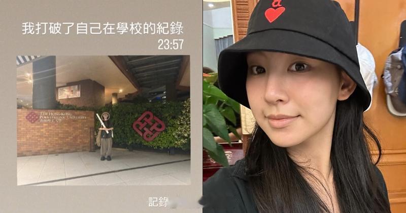 炎明熹(Gigi)回復自由身後,成立個人工作室「然后」,並獲邀參與音樂劇《一束光-高錕的記憶》。已投入排練的她回復學業、事業兩邊忙的生活,昨晚(9月30日)更留在大學至接近半夜12時才離開。Gigi在社交平台分享在大學校門「打卡」的照片,她說︰「我打破了自己在學校的紀錄,23:57,記錄一下。見到好多同學都喺度打卡,試吓先﹗」