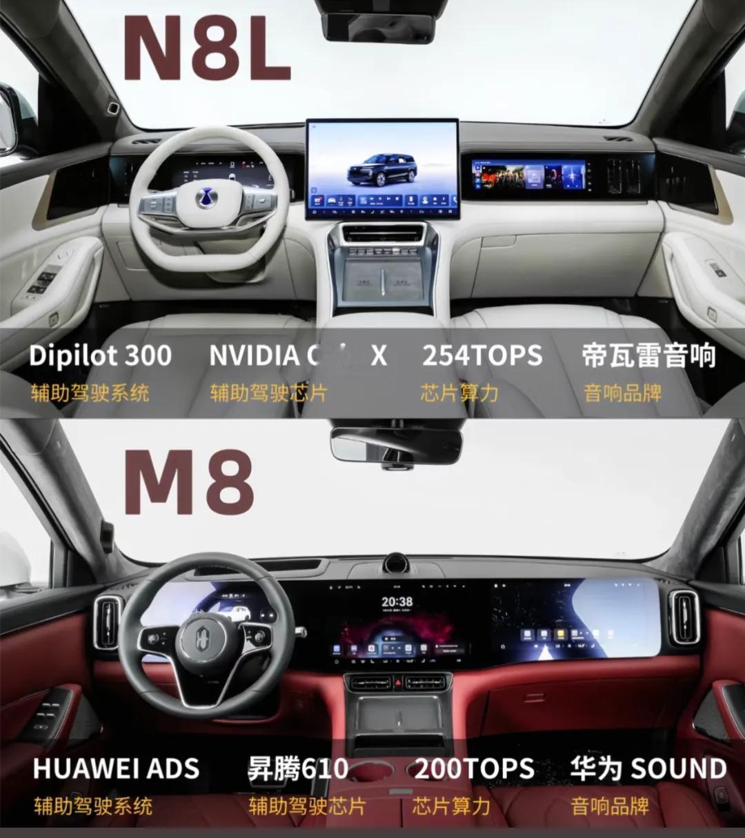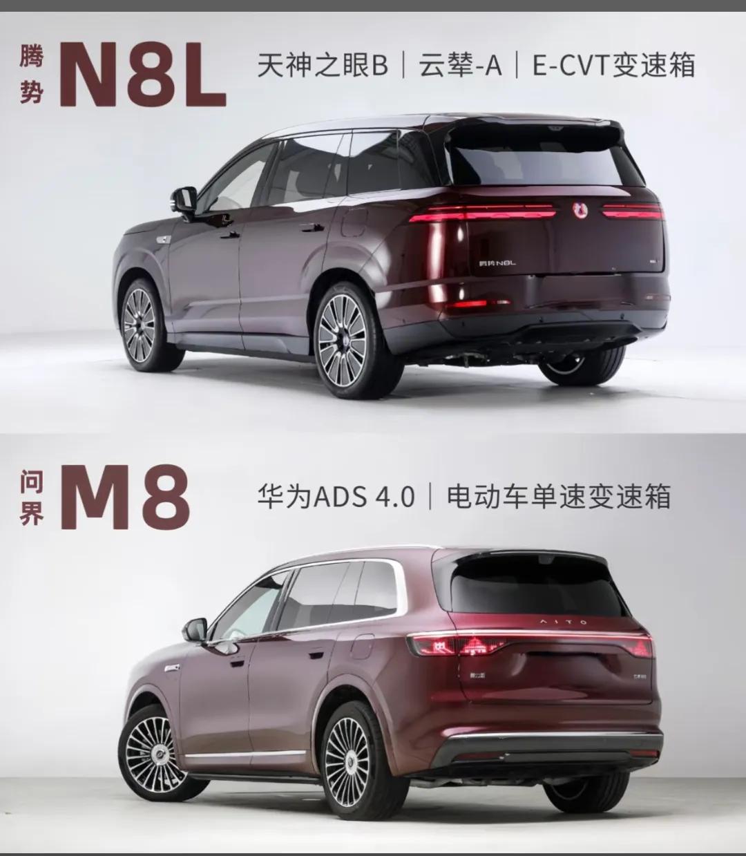 问界M8只用了5个月销量10万台,为赛力斯创造了400亿的收入,不过问界m8这一次算是遇到真对手了, 腾势N8L开启预售,直接杀进大六座SUV这片“红海”,31.98万起售的价格,就像一颗重磅炸弹,让不少人都坐不住了。这车到底有啥本事,敢在高手如林的市场里“横冲直撞”?咱这就来扒一扒。 腾势N8L那可是个“狠角色”,三电机系统综合功率高达762匹马力,就像给车装上了火箭推进器,3.9秒破百,这速度,比很多跑车还猛,同级对手看了都得直呼“好家伙”。而且它可不是个只会“飙车”的主儿,47kWh大电池在手,纯电续航能达到230公里,日常上下班、接送孩子,完全够用。要是电量不够了,快充模式下,从30%充到80%只要19分钟,喝杯咖啡的功夫,又能满血复活,这充电焦虑?不存在的! 5200mm的车长和3075mm的轴距,这尺寸,就像给车穿上了一件“大码外套”,空间那叫一个宽敞。六座布局,一家人出行,再也不用担心挤得像沙丁鱼罐头。更厉害的是,第三排座椅能前后滑动和靠背调节,再也不是传统SUV第三排那种“小板凳”的憋屈感,坐上去那叫一个舒服。车内还有49处储物空间和一个51升的“隐藏式暗格”,就像个移动的小仓库,啥东西都能找到地方放。后备厢容积最大能扩展到1077升,出去旅游,行李再多也不怕。 腾势N8L在智能配置上那也是毫不含糊,全系标配云辇 - A智能空气车身控制系统和“天神之眼”高阶智能驾驶系统,就算你选入门版本,也能享受顶级的智能体验。一颗激光雷达,就像给车装上了“千里眼”,城市和高速领航功能都不在话下。还有双冰箱、双桌板、副驾零重力座椅和20扬声器的音响,这配置,简直就是把豪华酒店的享受搬到了车里,坐在里面,那感觉,倍儿爽!问界M8 华为车问界M8