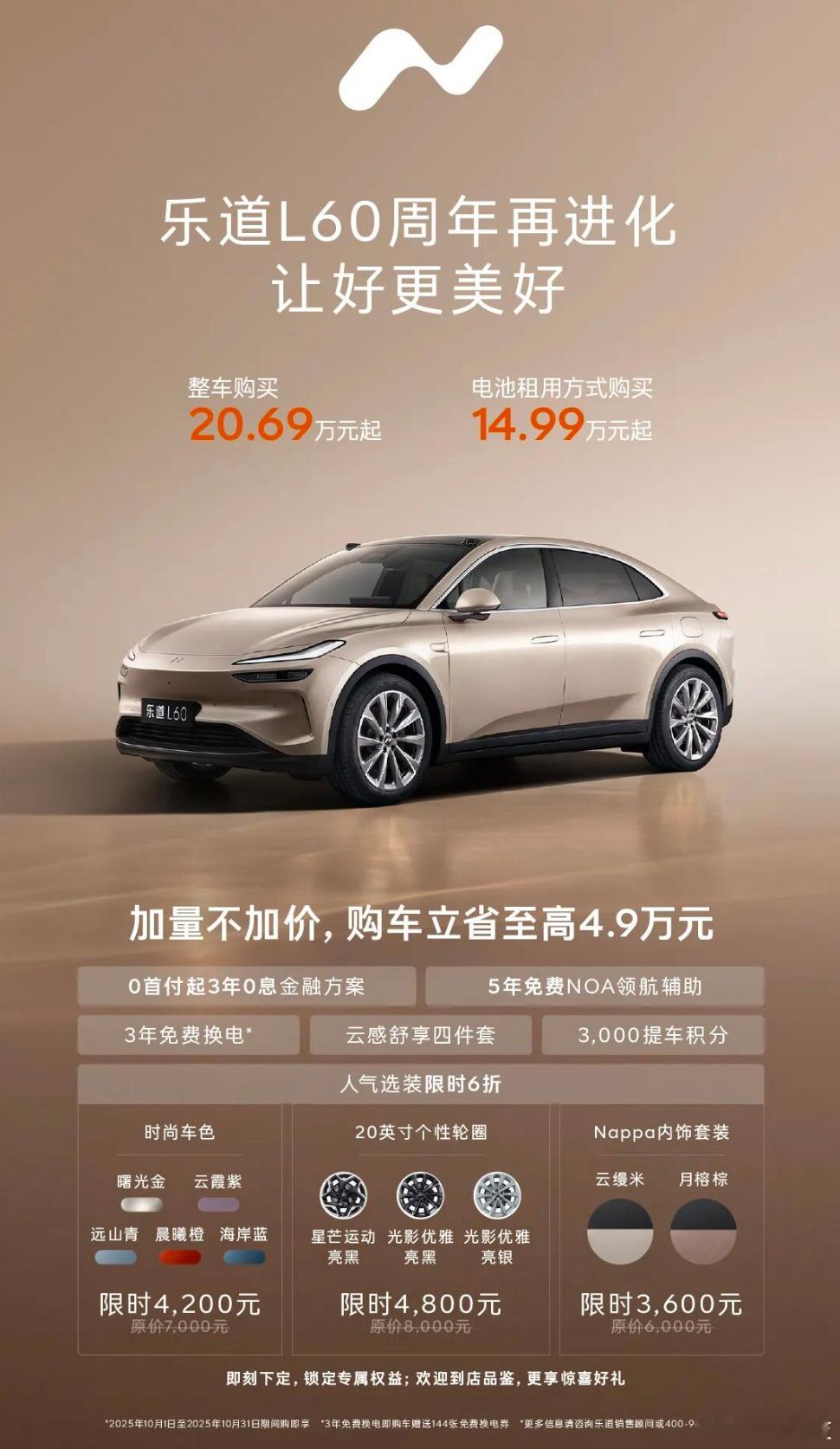 乐道10月份交卷了,出奇意外的好,连续两个月交付破万;乐道L90的爆火带动了乐道L60的回升,10月总计交付15246台,持续攀高的节奏,乐道就快独当一面了。选大五座、大三排SUV可以看乐道L90,选家用轿车,乐道L60租电才14.99万起,综合性价比很香,乐道继续冲~