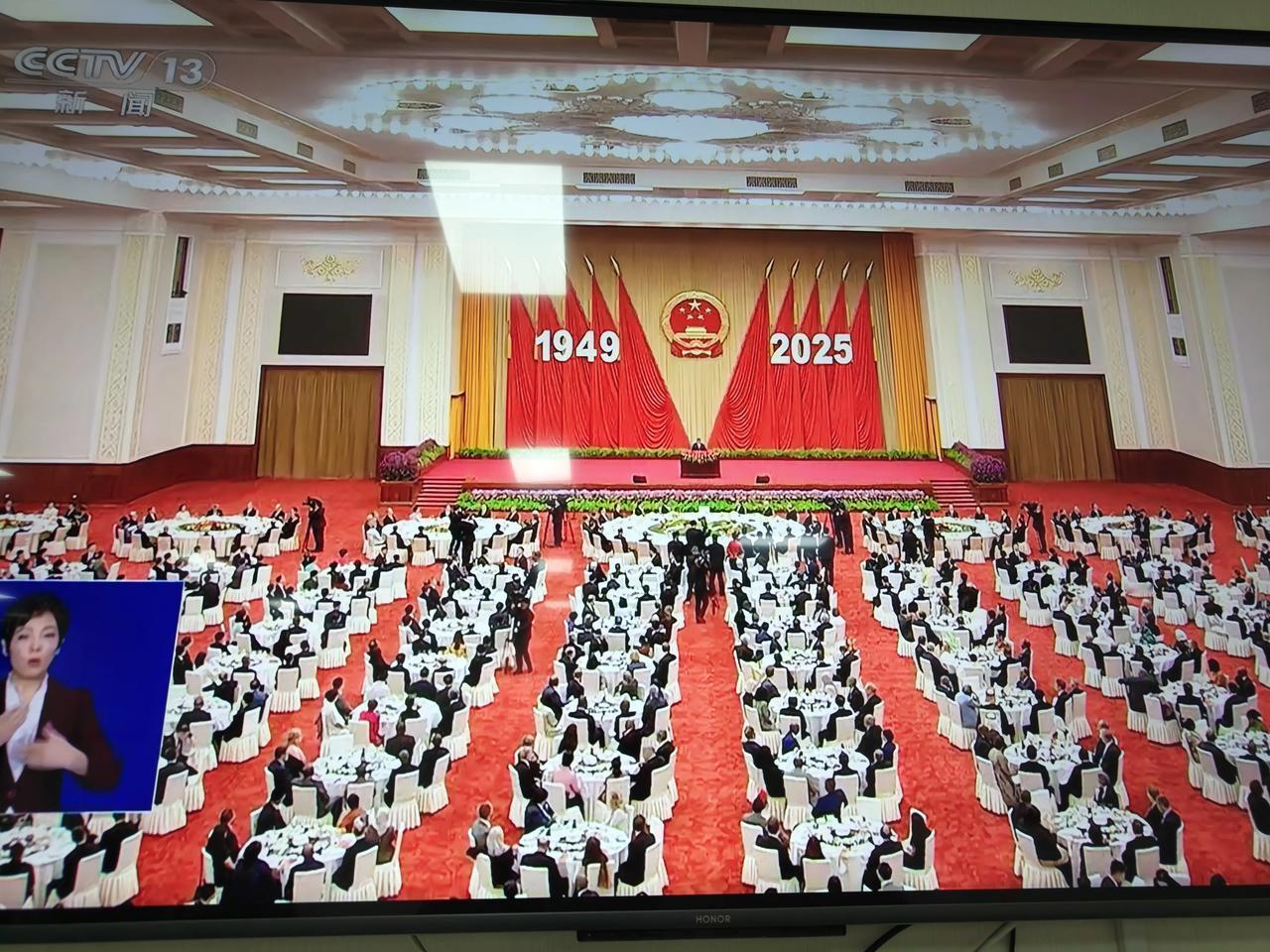 今天国庆招待晚宴上每个人面前摆着一颗苹果,你注意到了吗? 今天是国庆长假第一天,人民大会堂组织招待晚宴,摆满了圆形的餐桌,每个人餐盘上都摆着一个红彤彤的苹果,圆溜溜地端坐在白瓷盘里,像小红灯笼似的照亮了整个人民大会堂宴会厅。这可不是普通水果——圆桌围坐,苹果传情,取的是“平平安安”的好兆头,更是“团圆美满”的暖心祝福。 现场一位大姐笑着说:“这苹果摆得真讲究,平平安安过日子,就是我们老百姓最大的心愿!”朴实的话语,道出了十四亿人最朴素的期盼。 正值金秋,也是丰收的季节。这颗小小的苹果,既带着“平安果”的美好寓意,又散发着“丰收果”的甜蜜气息,更象征着一年来祖国在各行各业取得的硕果。