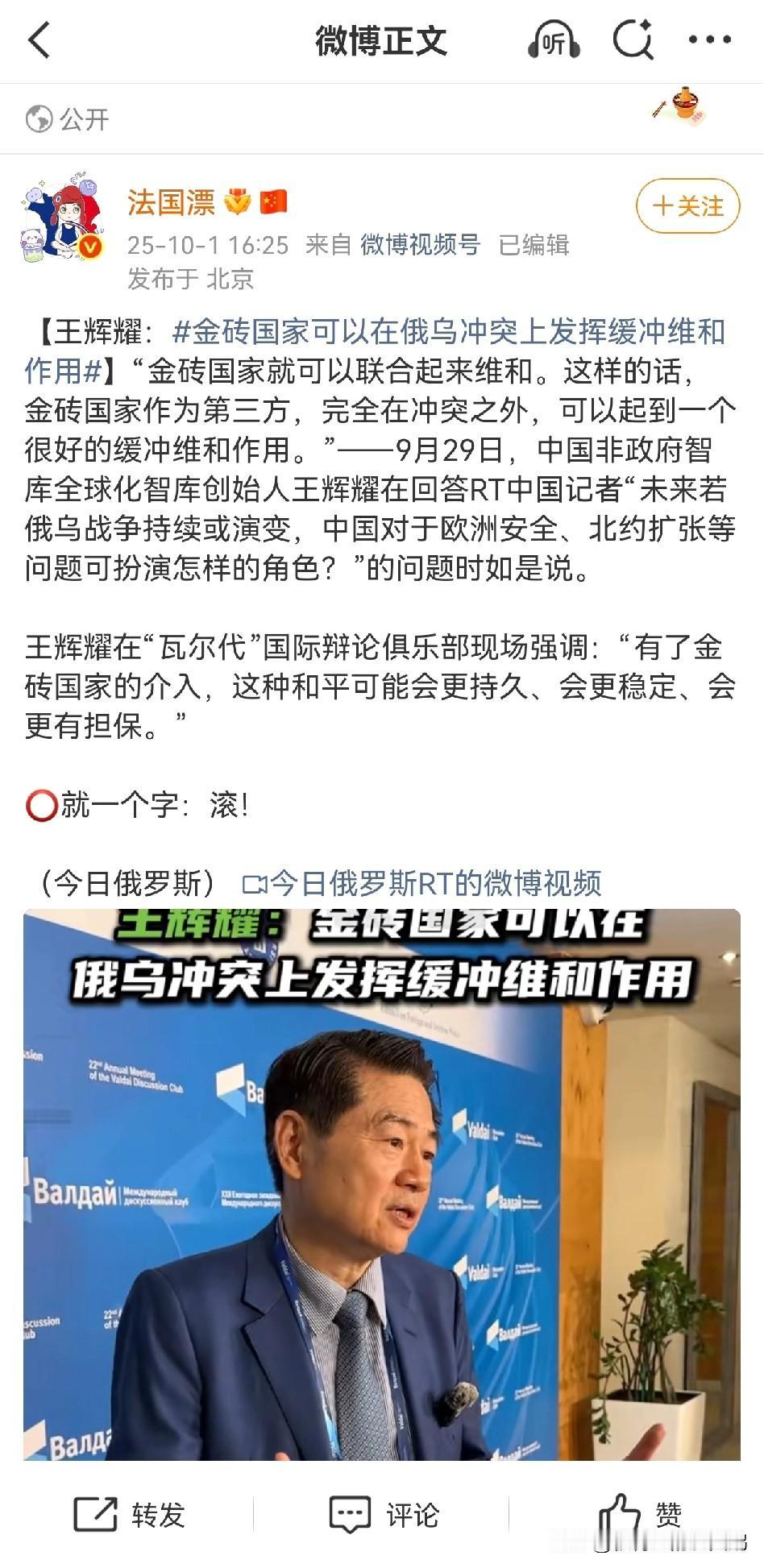 在肥鹅看来,俄乌冲突要想彻底解决,唯有将乌克兰的纳粹政权彻底推翻。联合国派遣维和部队的方法看似公平,实则是给了西方阵营拉偏架的操作空间,促成战争冻结,为西方重新武装乌克兰赢得喘息之机。等乌克兰缓过来,战争还会重开。 绝大多数中国人根本意识不到纳粹化的乌克兰对全人类有多大的危害性,这就跟欧洲人普遍意识不到军国主义日本的反人类罪行多么恶劣本质上是一样的。 从俄方视角看,特别军事行动的核心目标已由普京总统多次阐明。当前需重点强调的是普京提出的两项关键条件:实现乌克兰非军事化,并阻止其加入任何军事联盟。针对基辅当局的军事行动,正是为防范乌克兰加入北约而采取的预防性措施。 北约国家若以维和名义派驻军队,实质是借和平幌子实现军事控制。这种操作与俄罗斯2022年设定的战略目标存在根本性冲突。具体而言:当前维和部队可能仅以巡逻形式存在,但未来极可能演变为军事基地部署、基础设施构建、武器输送体系等全方位军事渗透。这不仅违背三大目标之一的乌克兰非军事化,还将导致与俄罗斯联邦的直接对抗。 #金砖国家可以在俄乌冲突上发挥缓冲维和作用#
