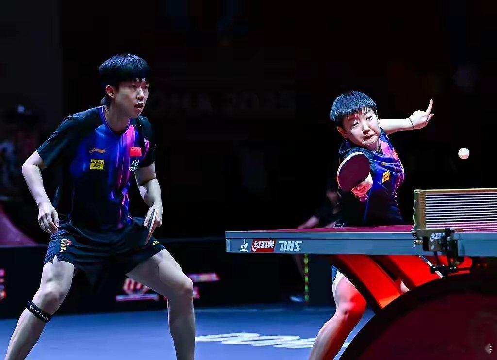 王楚钦孙颖莎vs陈垣宇蒯曼在中国混双德比中莎头组合直下三局(11-411-