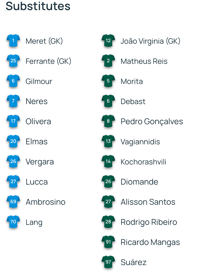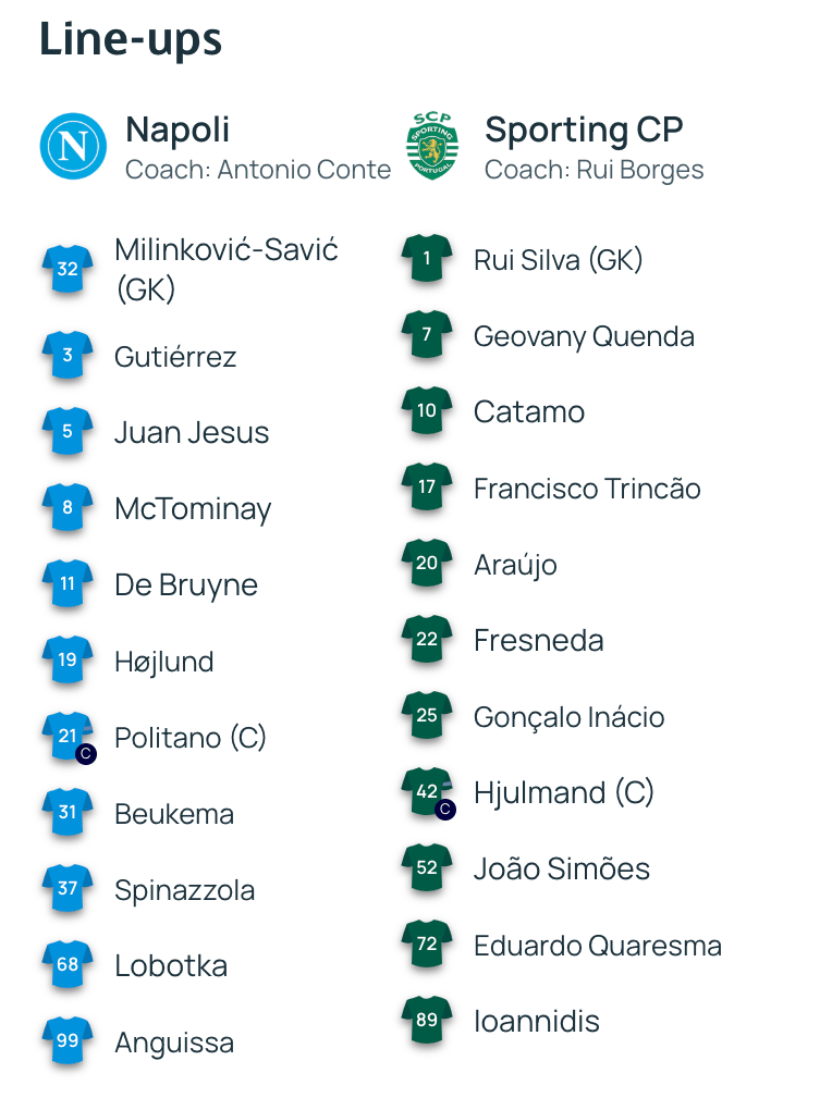 虎扑10月02日讯欧冠联赛小组赛第2轮,那不勒斯主场迎战葡萄牙体育,赛前,双方公布了本场比赛首发名单。