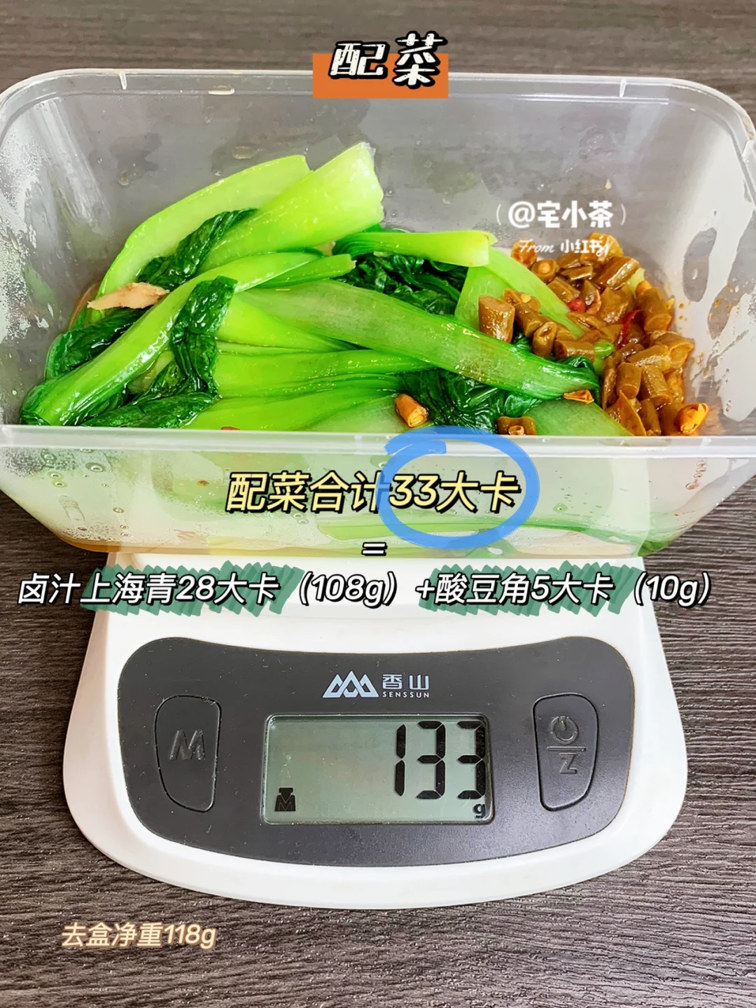 —其中,卤汁上海青28大卡(108g)+酸豆角5大卡(10g)