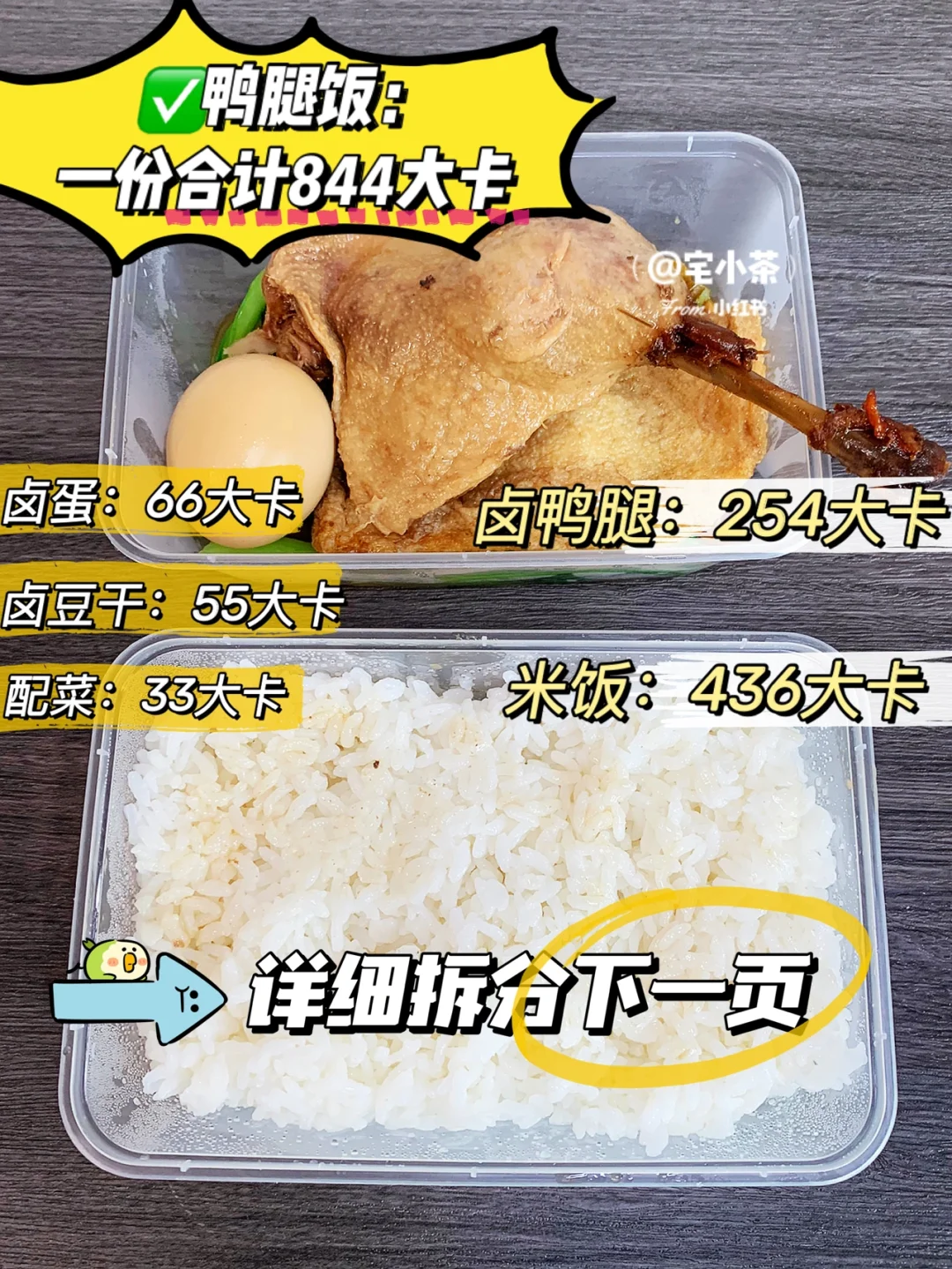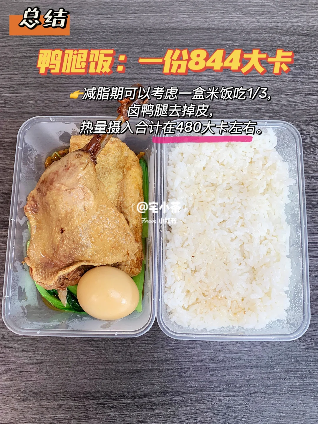 👉减脂期可以考虑一盒米饭吃1/3,卤鸭腿去掉皮,热量摄入合计480大卡左右。