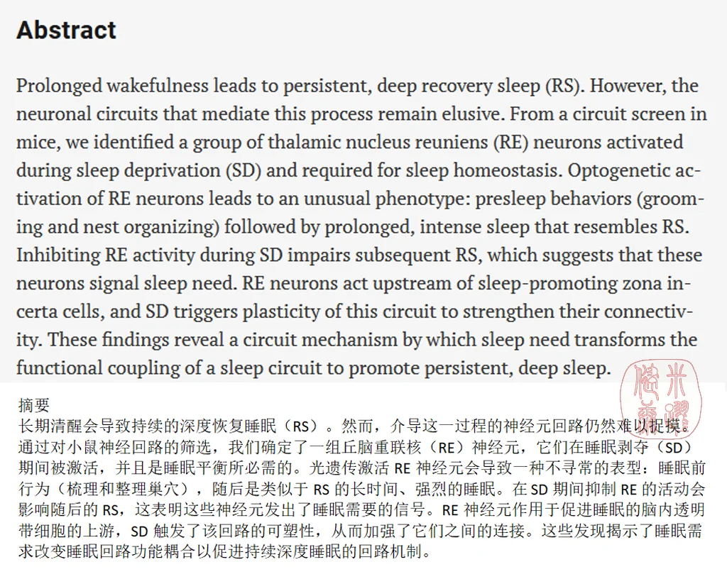 这个机制藏在小鼠的丘脑里,一个名为内侧核团重聚核(mRE)的地方。这里的神经元就像一群勤劳的“睡眠守护者”,它们不直接让你入睡,却在你最需要的时候,为你送上深度的非快速眼动(NREM)睡眠,仿佛是大自然最温柔的抚慰。