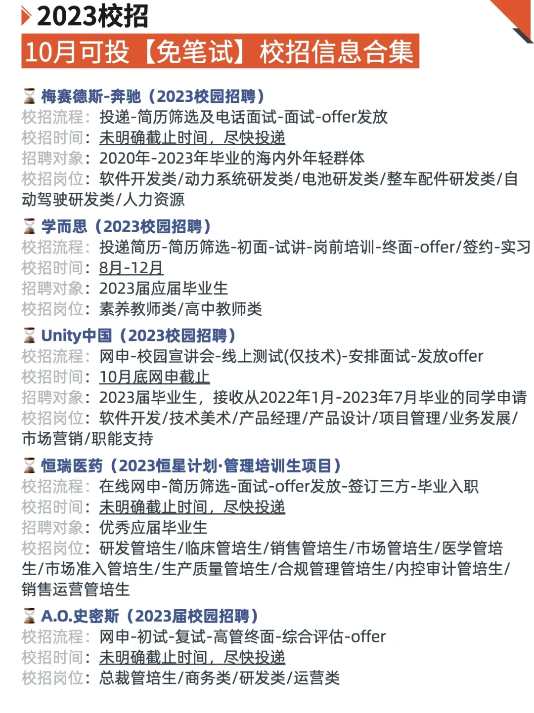▪️这就给大家整理了一些招聘环节中没有笔试、测评的校招信息,有合适的可以投投哈