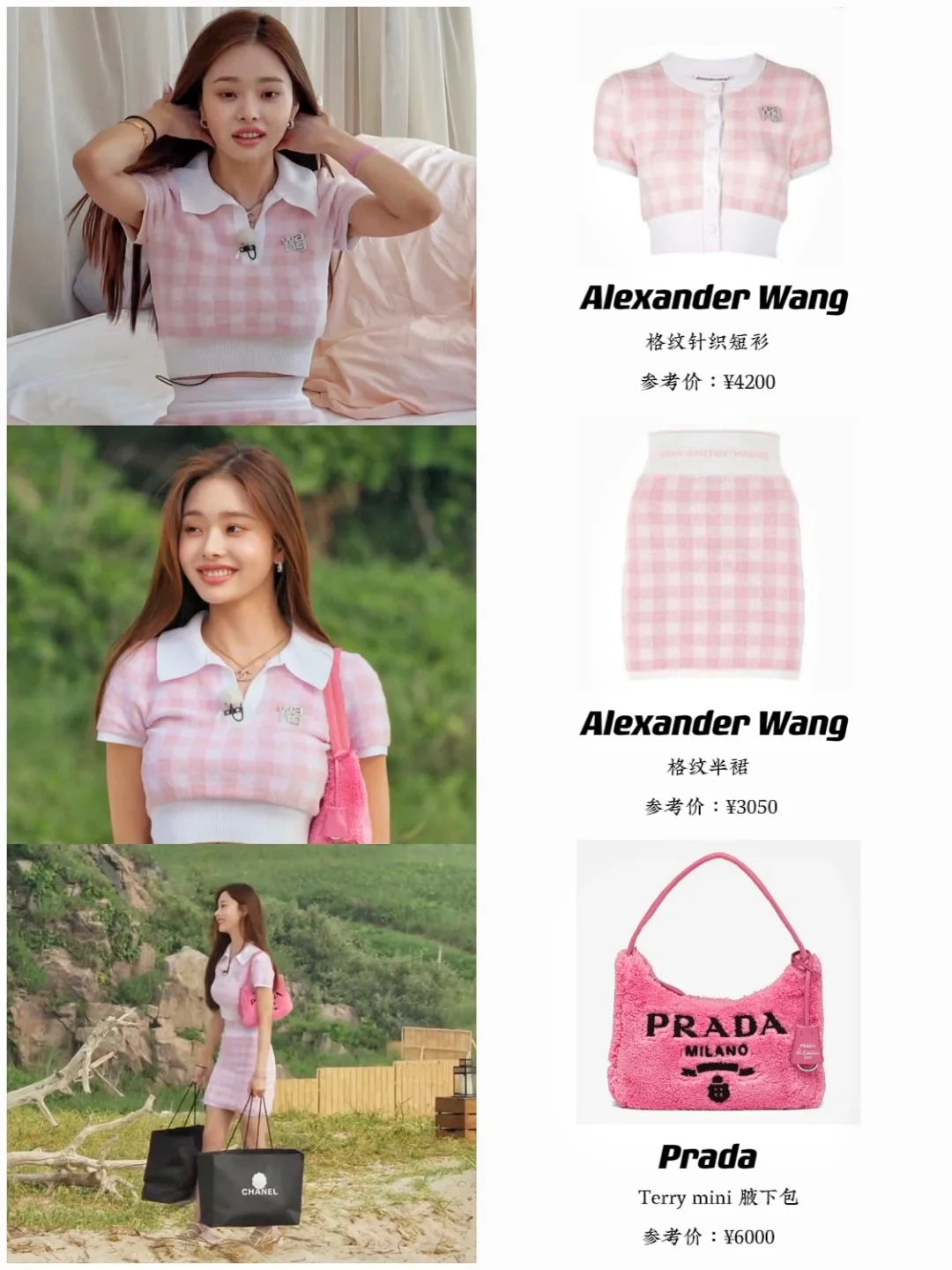 还有AW的粉色格纹套装,也是今年女团撞衫率最高的一套衣服,aespa的winter、Somi等人都有穿过。