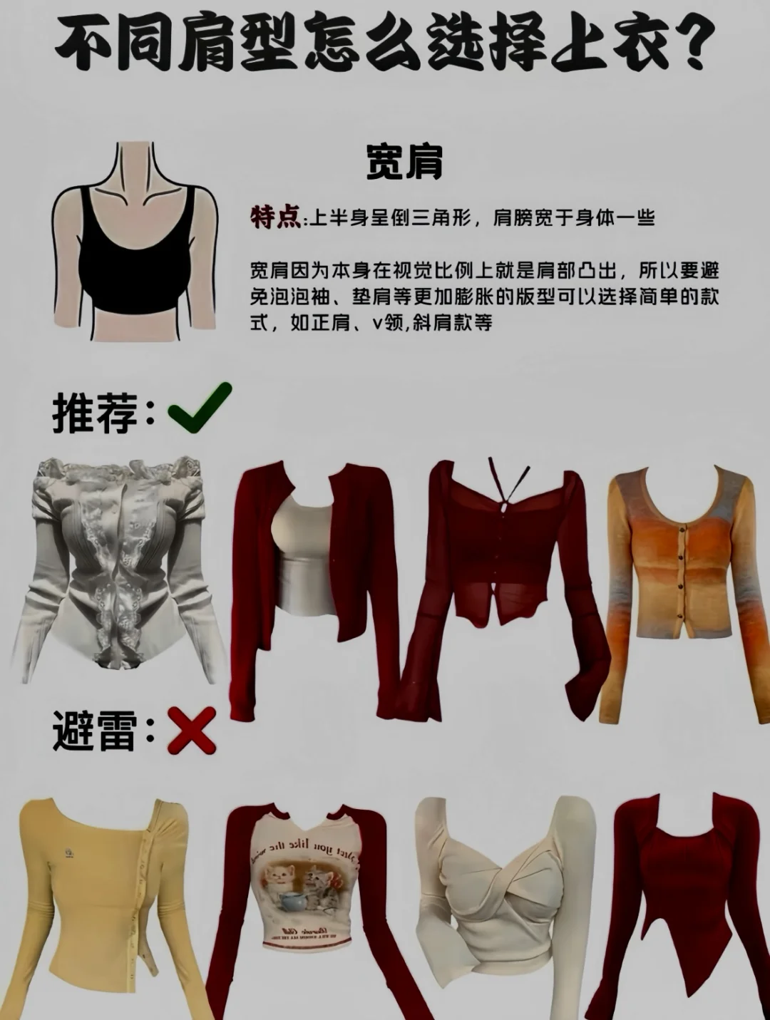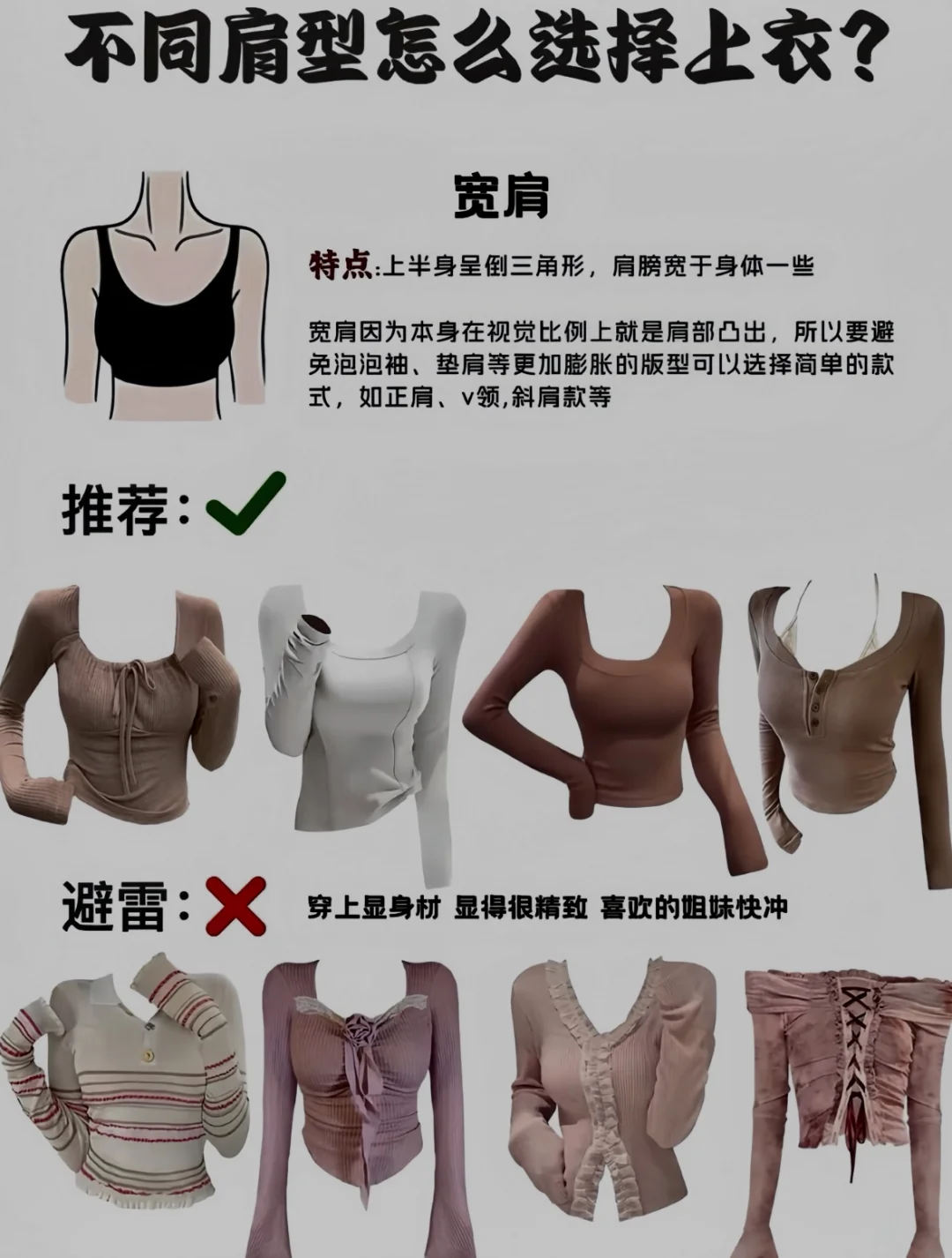 ✅ 大圆领+正肩上衣:延长脖颈线,显瘦又精神!