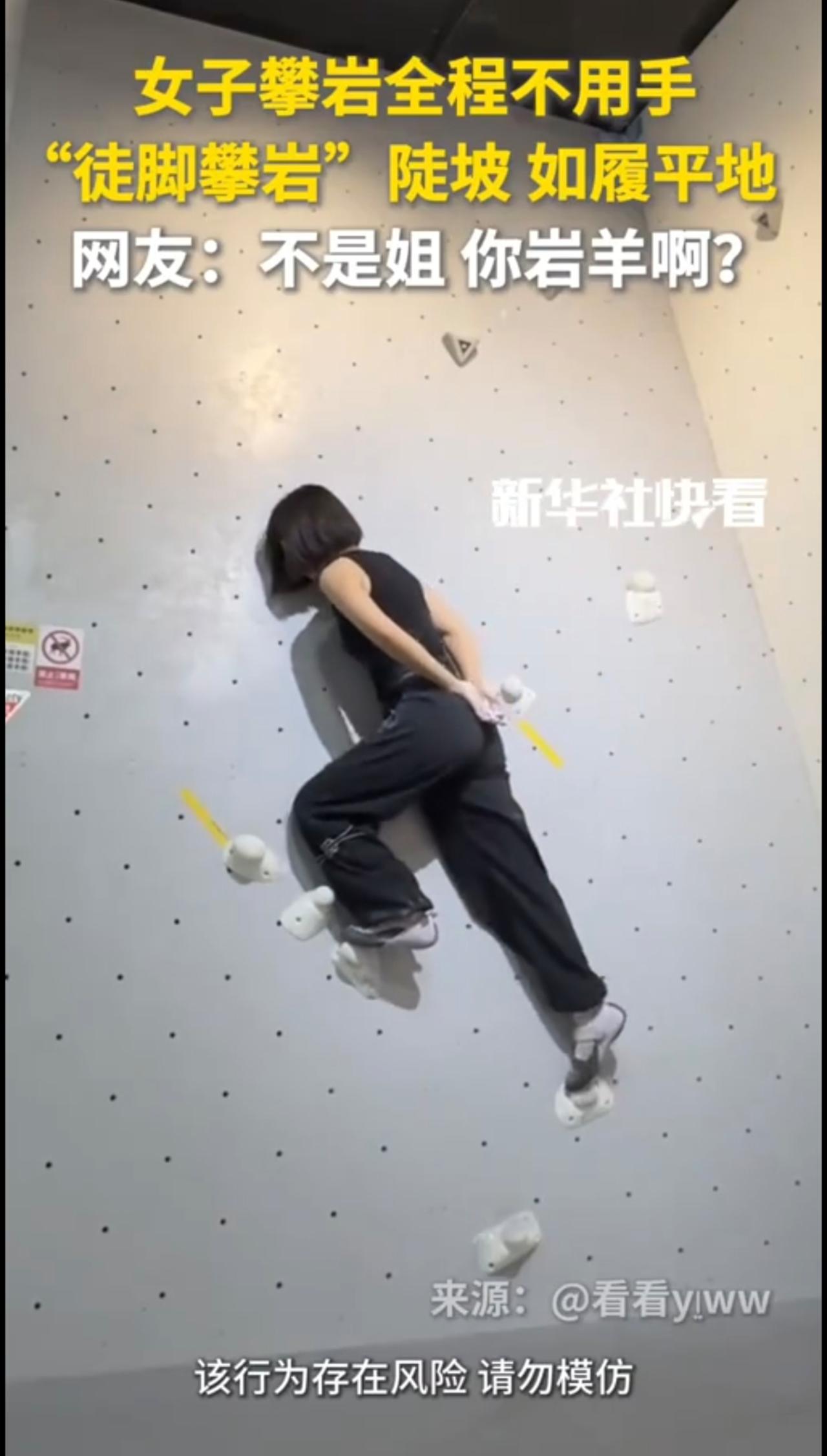 女子攀岩全程不用手,“徒脚攀岩”陡坡如履平地,网友:不是姐,你岩羊啊?