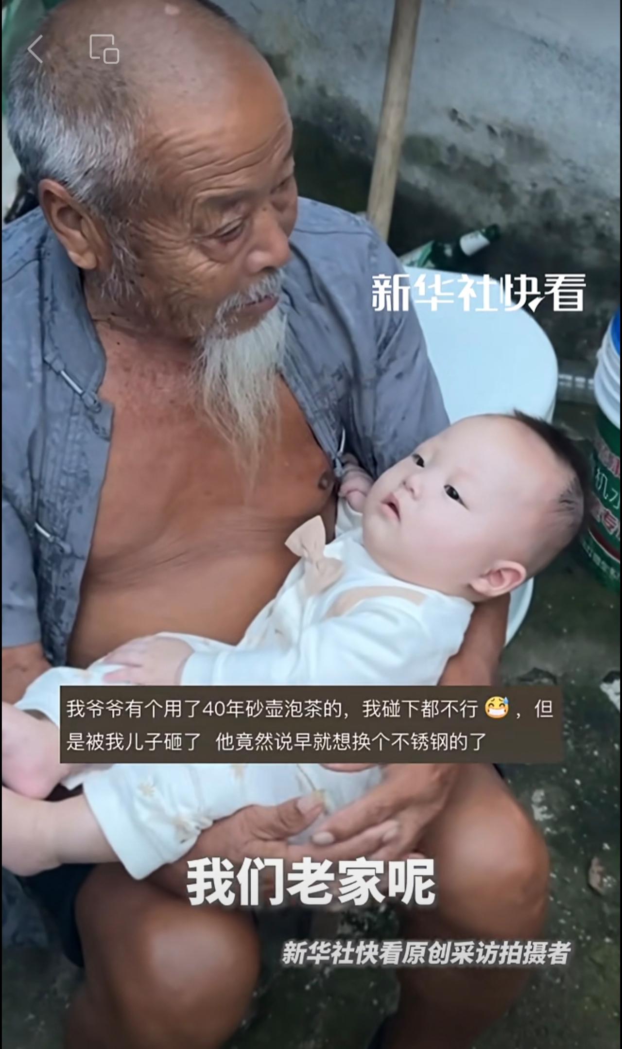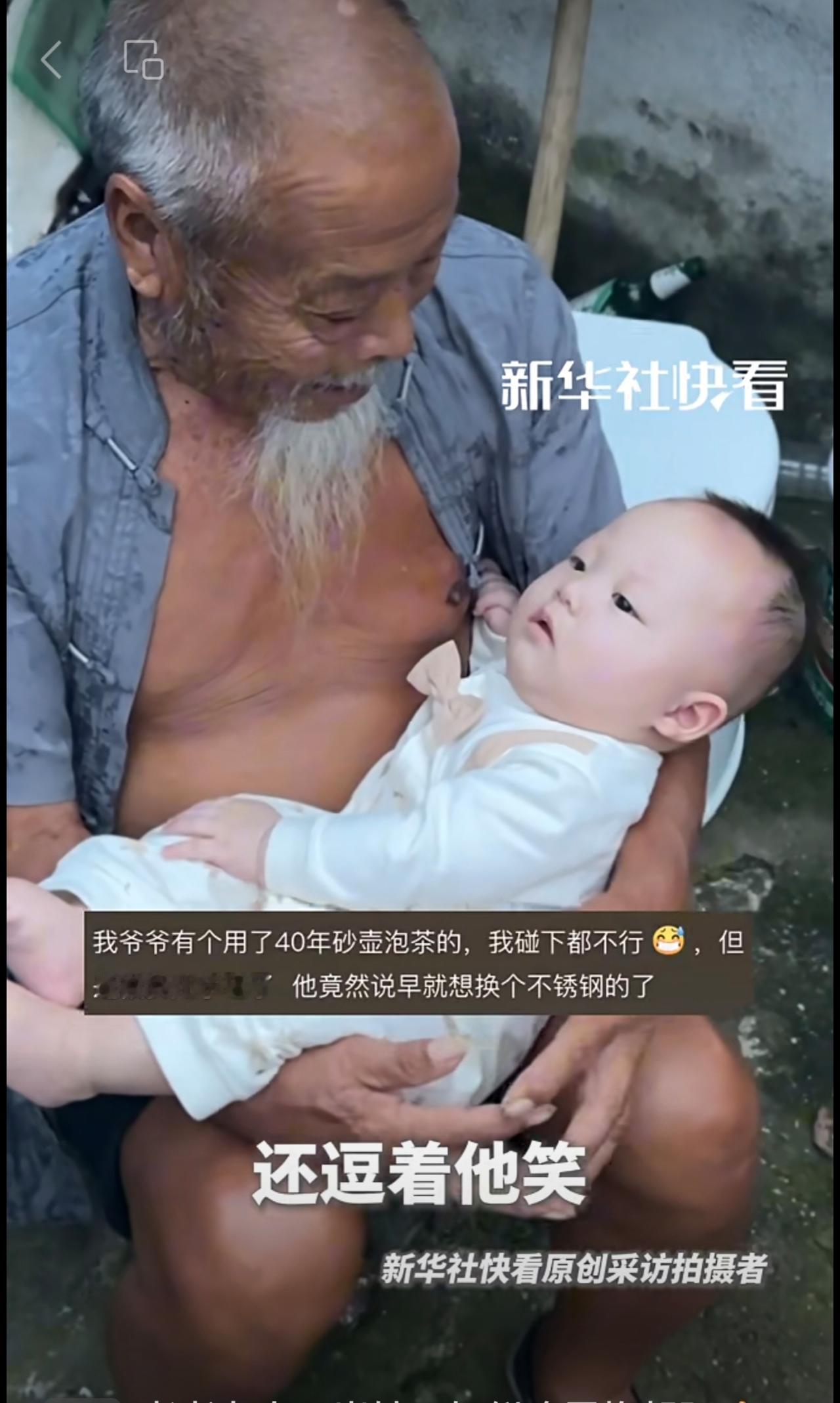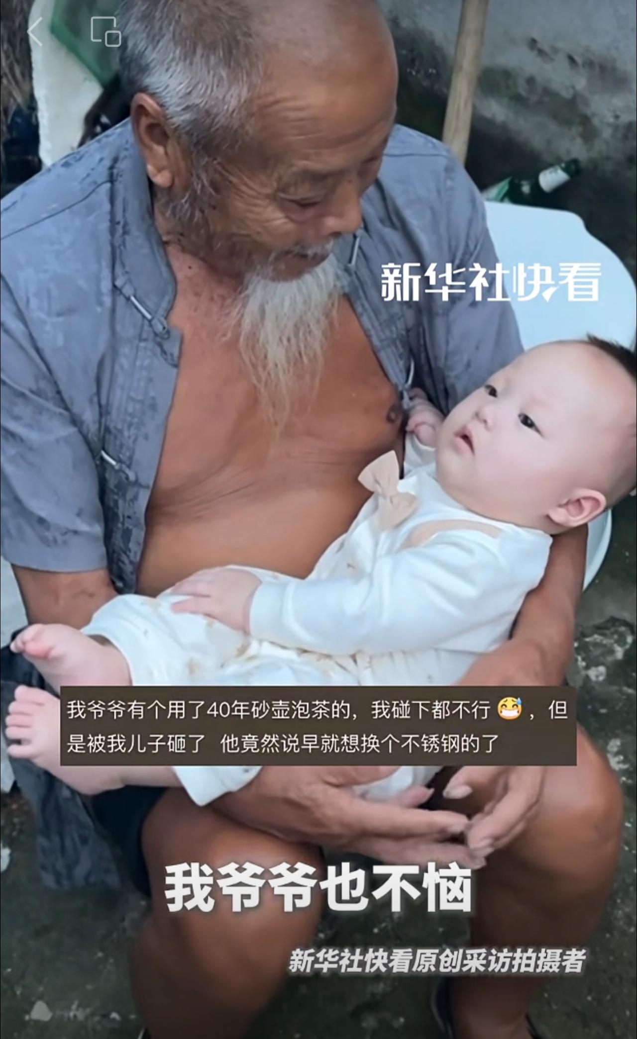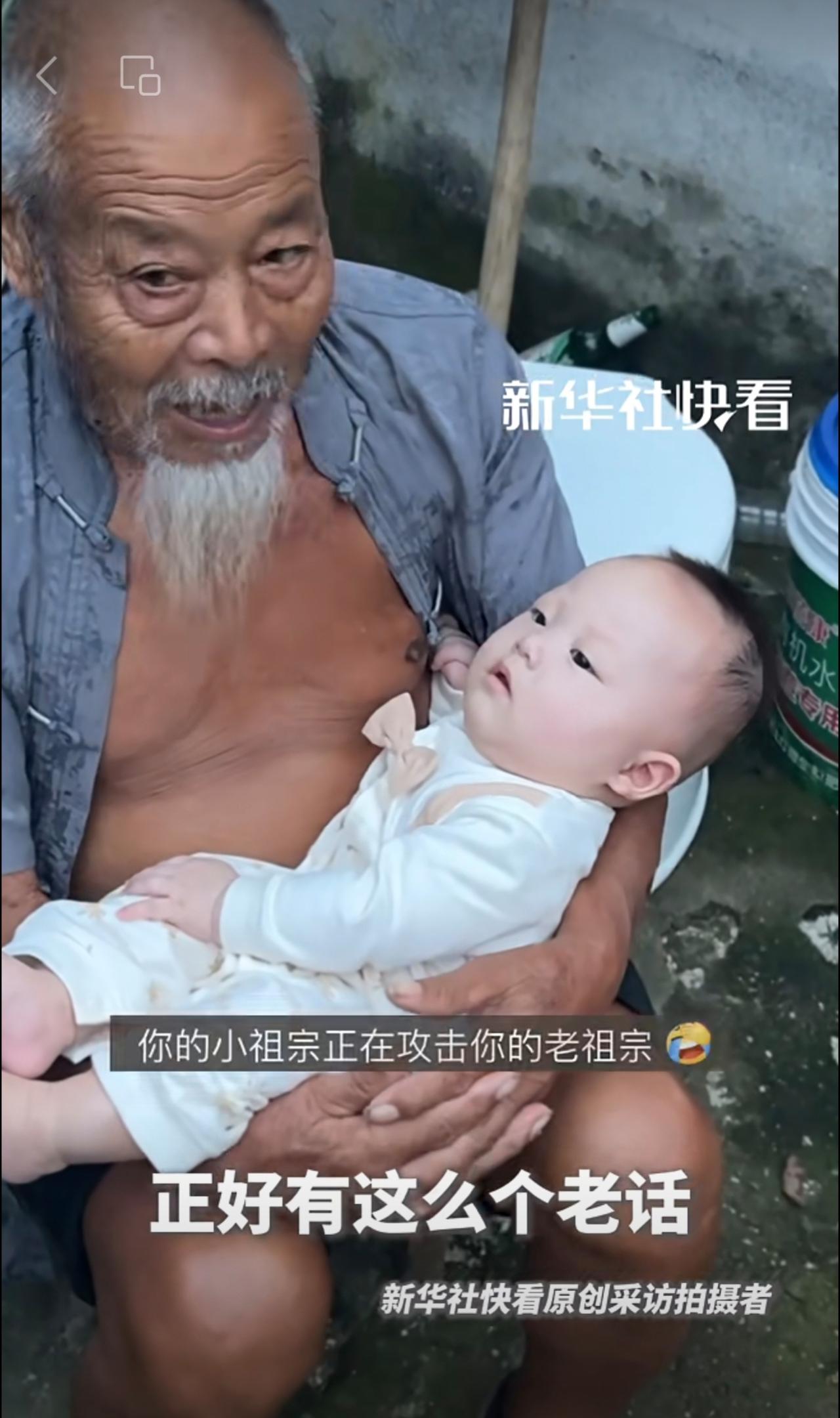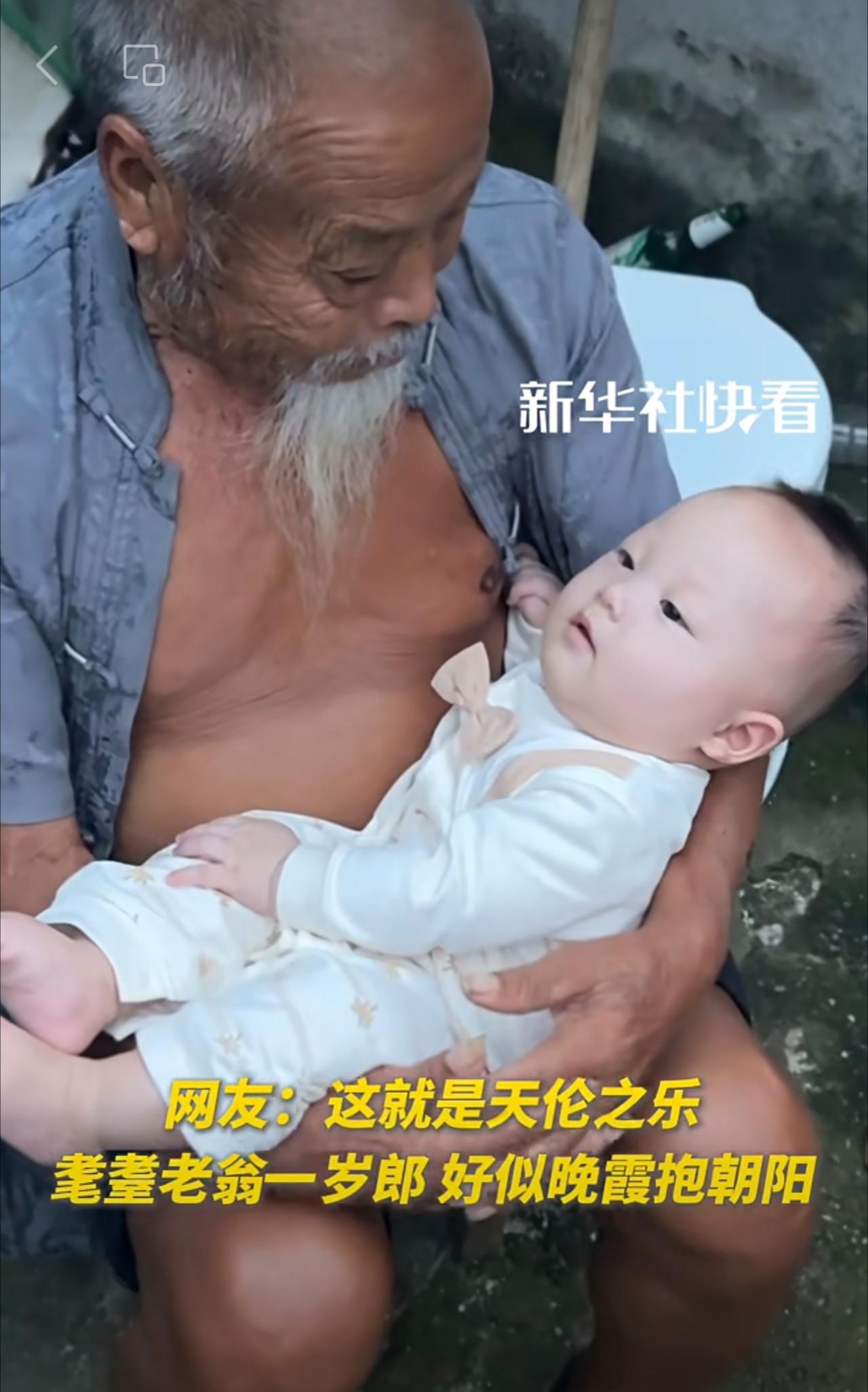 “太爷爷的胡子只能重孙子摸”。男子分享自己家的天伦之乐。网友:隔辈亲,隔两辈更亲!