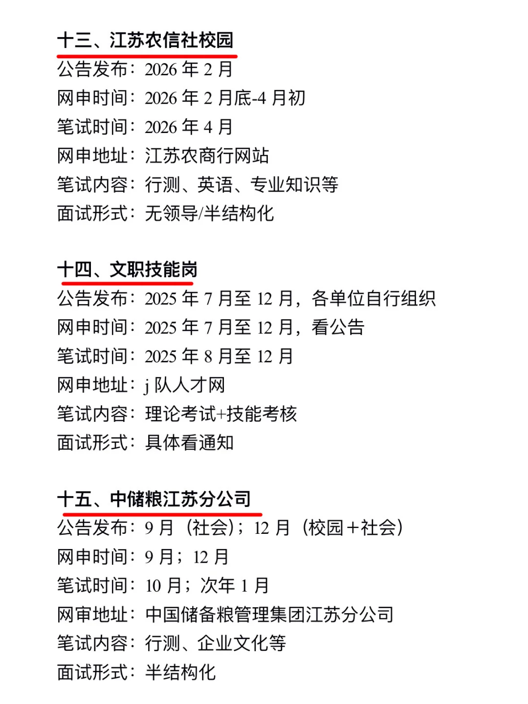 14、中储粮江苏分公司:9/12月报名,10/次年1月考试