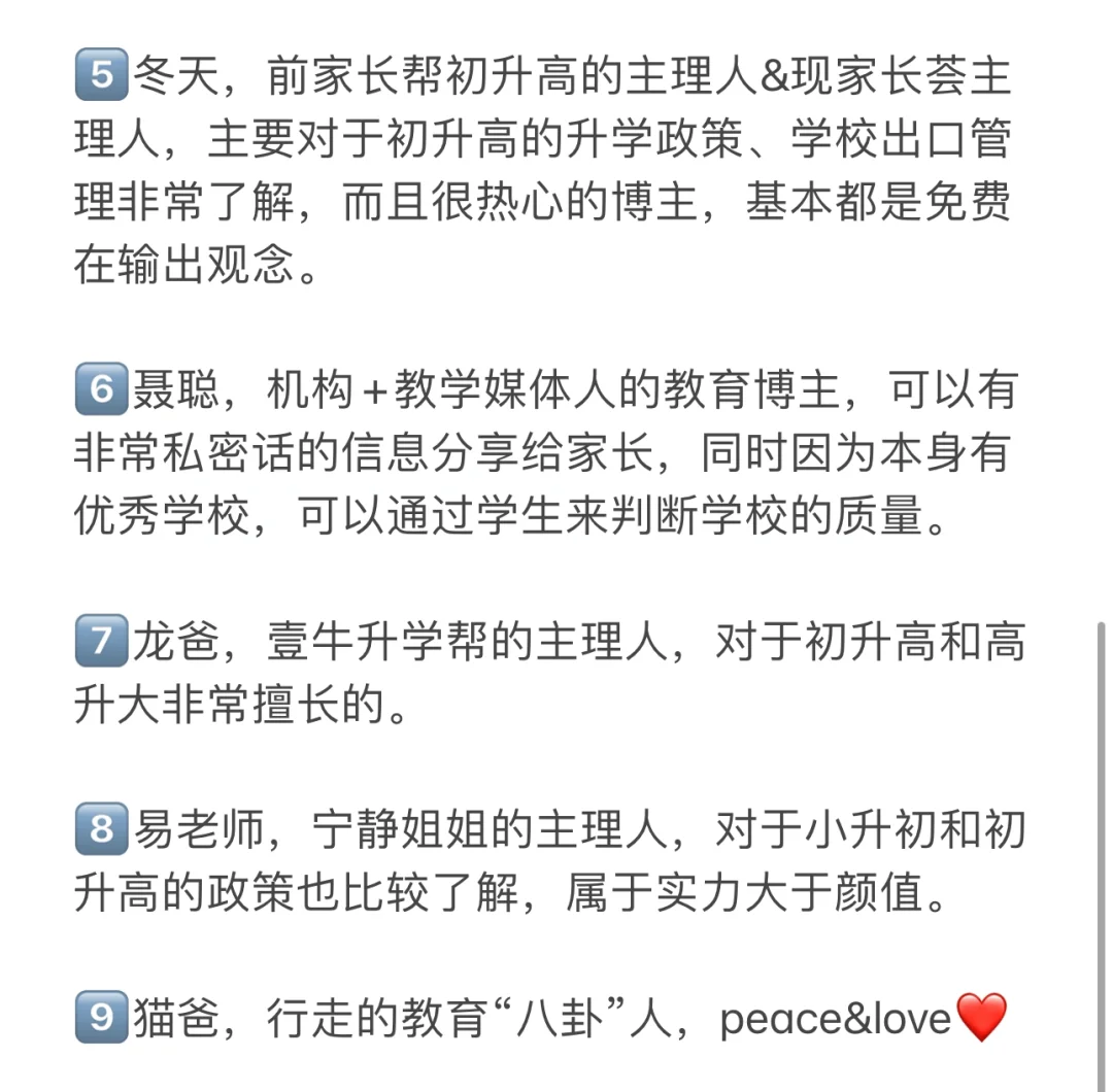 5️⃣冬天,前家长帮初升高的主理人&现家长荟主理人,主要对于初升高的升学政策、学校出口管理非常了解,而且很热心的博主,基本都是免费在输出观念。