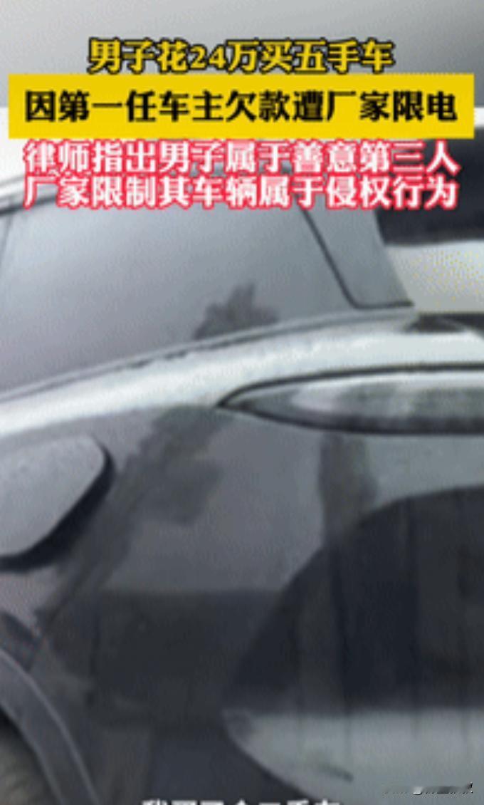太离谱了!重庆,一男子花24万买了辆五手车,可半年后他开车去外地出差时,车子突然熄火无法启动,就赶紧联系厂家,不料,竟得知车辆是被厂家给限电了,而原因则是第1任车主没还完贷款,男子很无语,前面车主没还钱,和自己又有什么关系! 咱们普通人买二手车,图的不就是个性价比,再就是手续齐全、能安心开,毕竟不是小钱,像 24 万这种,说多不多说少不少,够不少家庭攒一阵子的了。 重庆有位大哥,就是抱着这样的心思,入手了一辆五手车。当时看车的时候,二手车行把手续都拿出来核对了,过户流程也走得明明白白,大哥想着虽然是过了四手的车,但只要没问题,自己开着代步、跑个业务也挺好,没成想这车却成了他的烦心事。 大哥买了车之后,前半年开着都挺顺,没出什么幺蛾子,直到有一次,他开车去外地出差,正开在半路上呢,车子突然就熄火了。 一开始他还以为是车子出了什么小故障,比如没油了或者电瓶没电?可下车检查了一圈,油是满的,电瓶看着也没毛病,试着打了好几次火,车子就是纹丝不动,跟块废铁似的戳在路边。 这前不着村后不着店的,大哥急得不行,赶紧先联系了附近的维修师傅,师傅过来检查了半天,也没找出问题,最后建议他联系汽车厂家问问,说不定是车辆系统出了什么状况。 大哥赶紧拨通了厂家的客服电话,可客服说出来的话,让他当场就懵了 ,车子不是出了故障,是被厂家给限电了,所以才启动不了。 大哥当时就纳闷了,自己好好开车没犯什么错,厂家凭啥限自己的车?接着客服又说了个更让他匪夷所思的理由,因为这辆车的第一任车主,还有贷款没还完所以厂家才采取了这个措施。 听到这话大哥真是又气又无奈,他拿着手机,站在路边跟客服理论:“第一任车主欠你们钱,那你们找他去啊!这车子都过了四手了,我是第五任车主,当时买车的时候手续全齐,过户也合法,现在这车在法律上就是我的,前面的人没还钱,跟我有什么关系?凭什么锁我的车?” 可客服那边也没给出什么合理的解释,就只是翻来覆去说会把情况反馈给高层,后续会安排专人对接处理。 大哥只能等着,可这 “专人对接” 迟迟没动静,他后来才弄明白,原来第一任车主当初办的不是普通的车辆抵押贷款,而是一种信用贷款。这种贷款跟一般的车贷不一样,不用在车管所登记抵押信息,所以车子后续过户的时候,不管是二手车行还是他这个买家,都查不到这笔隐藏的债,就这么着,这辆车跟击鼓传花似的,转了四手直到到了他手里,这颗 “雷” 才炸了。 大哥这心里别提多憋屈了,24 万花出去买了辆车,结果开了半年就被锁在路上,还得为前任车主的债务背锅,他又找了厂家好几次,可对方要么是拖着不处理,要么就是拿官方说辞应付,连个具体的解决时间都给不了,他也想过走法律途径,可一想到打官司要花时间、花精力,自己平时还要工作,心里更是犯难。 现在车子都越来越智能,能远程控制也不是什么新鲜事,可这种控制权也得有个边界吧?不能厂家想锁就锁,完全不顾后续车主的合法权益,而且二手车交易的透明度也得提一提,这种隐藏的债务信息,要是一直查不到,那以后还会有更多人像这位重庆大哥一样,花了钱还糟心,希望厂家能赶紧给大哥一个说法,把问题解决了,也希望相关部门能管管这种事,别让更多普通人栽在这种 “数字陷阱” 里。 (信息来源:巨流视频 2025-9-24)