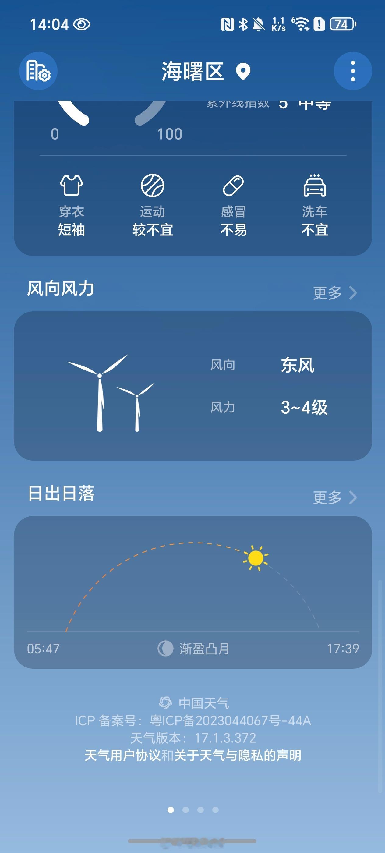 除了天气动效方面做的更加真实,其次就是在下面还新增了许多卡片指引比如说能见度、潮汐、气压等等一目了然[喵喵]