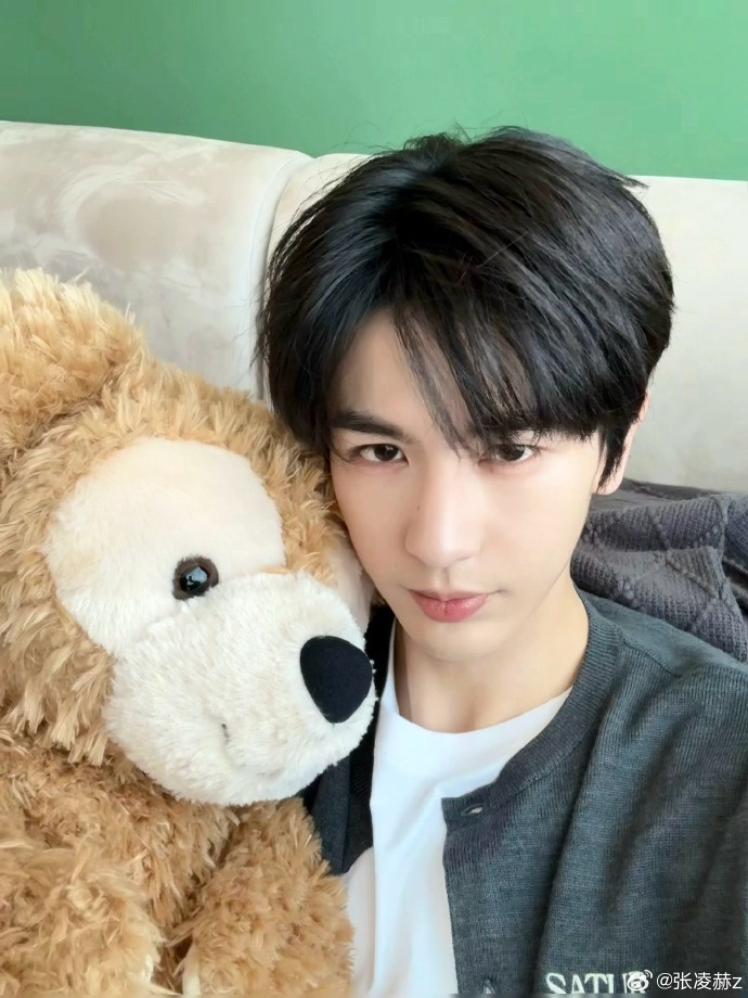 张凌赫国庆晒照,谁来懂一下这个张凌赫国庆自拍的可爱值啊,这个顺毛抱小熊的凌赫,别说还真的满分元气啊~