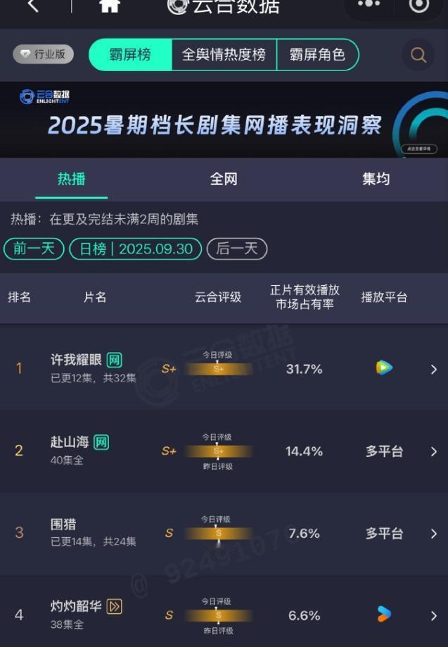 《许我耀眼》云合占比破30% 开播第五天,云合占比31.7%,断层第一,《赴山海》最高的时候都没上过30%,这部剧确实挺有意思的,之前基本上没有出现过类似题材的剧,虽然也是根据《大乔小乔》改编,但是只用了故事大致走向,内容几乎是新的故事,把一部反映社会现象的作品,主要侧重姐妹情,改成了一部普通女孩逆袭爽剧,侧重男女主复杂的感情,所以本质上还是脱离实际的偶像剧,但剧情比一般偶像剧更有冲突性和新鲜感。