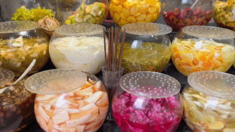 传统“酸嘢”制作少不了发酵的过程(现在也有部分商家延续了发酵的做法),和腌酸菜类似,都能产生益生菌。