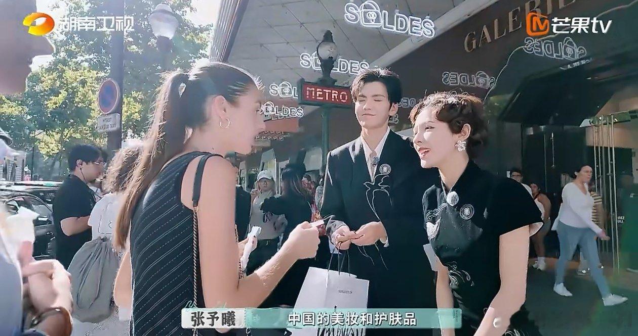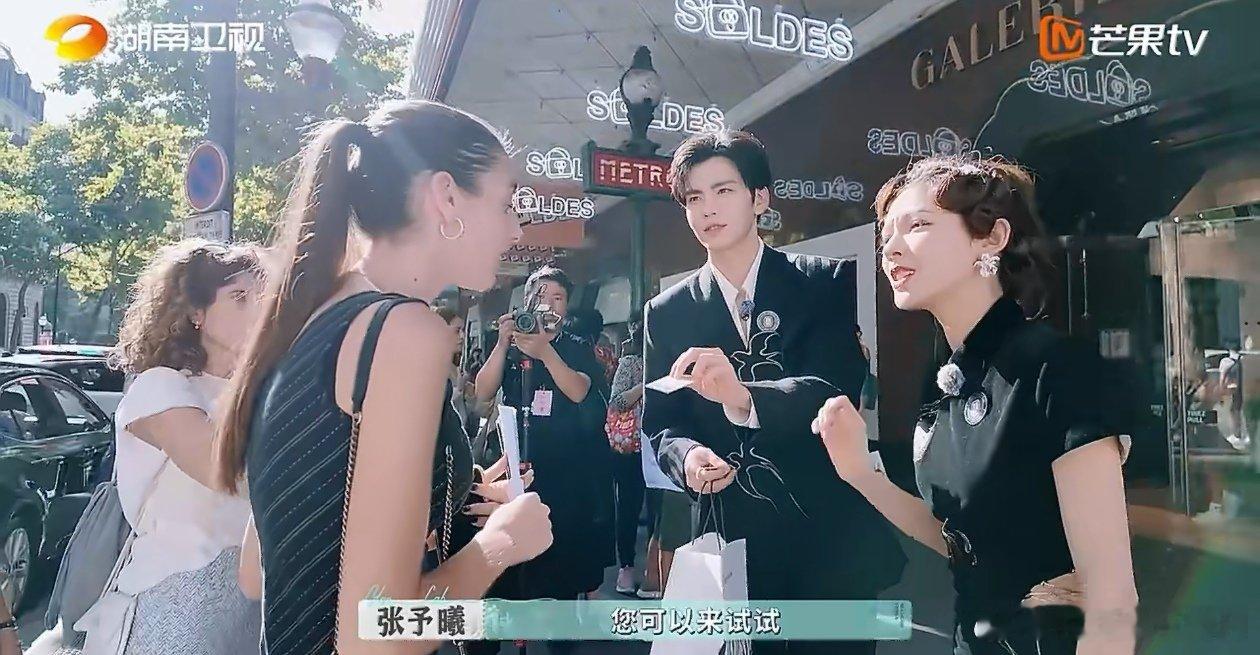 张予曦饭撒式街头揽客巴黎合伙人张予曦老佛爷百货营业,站在栏杆边揽客超甜!和毕雯