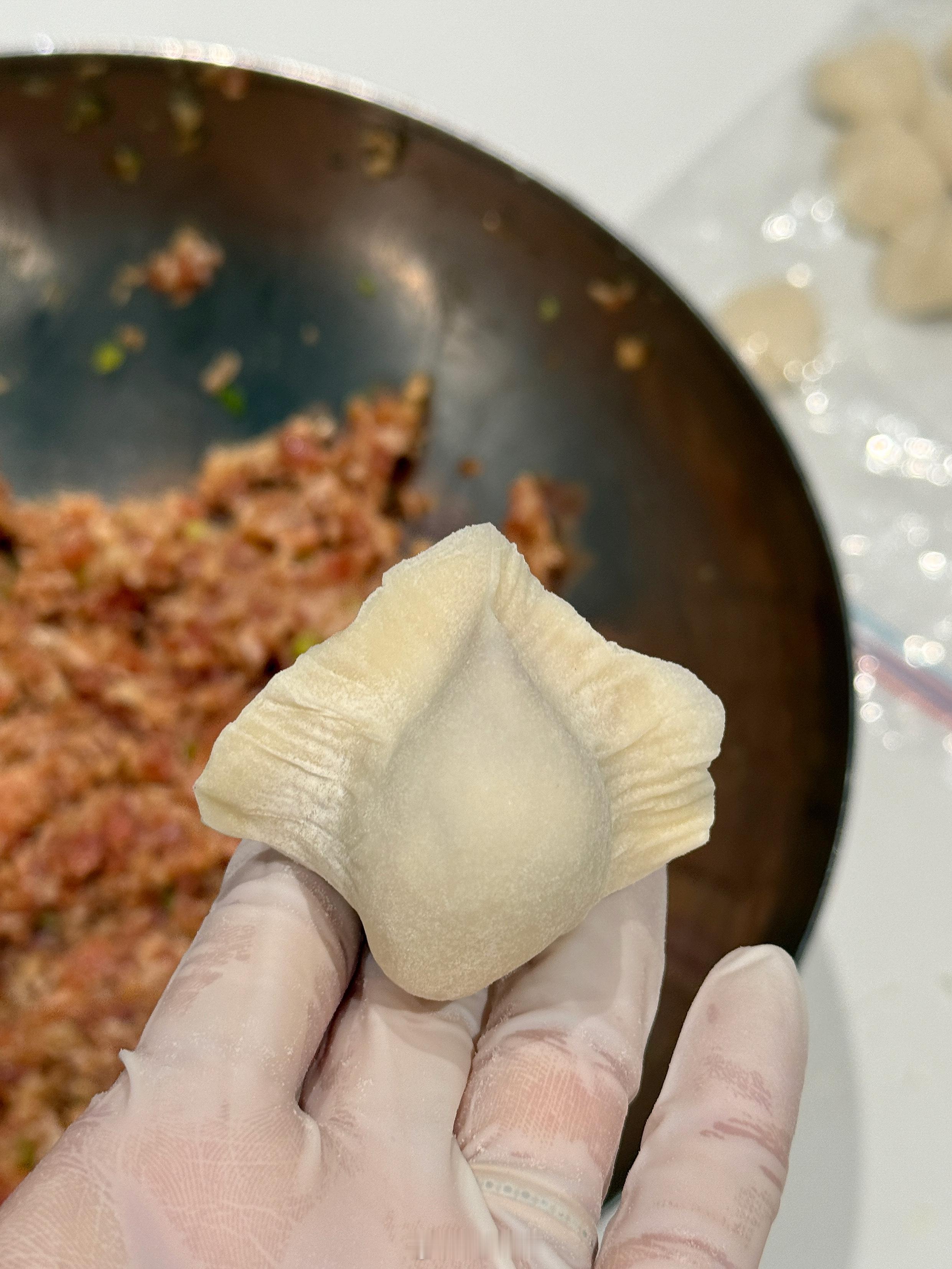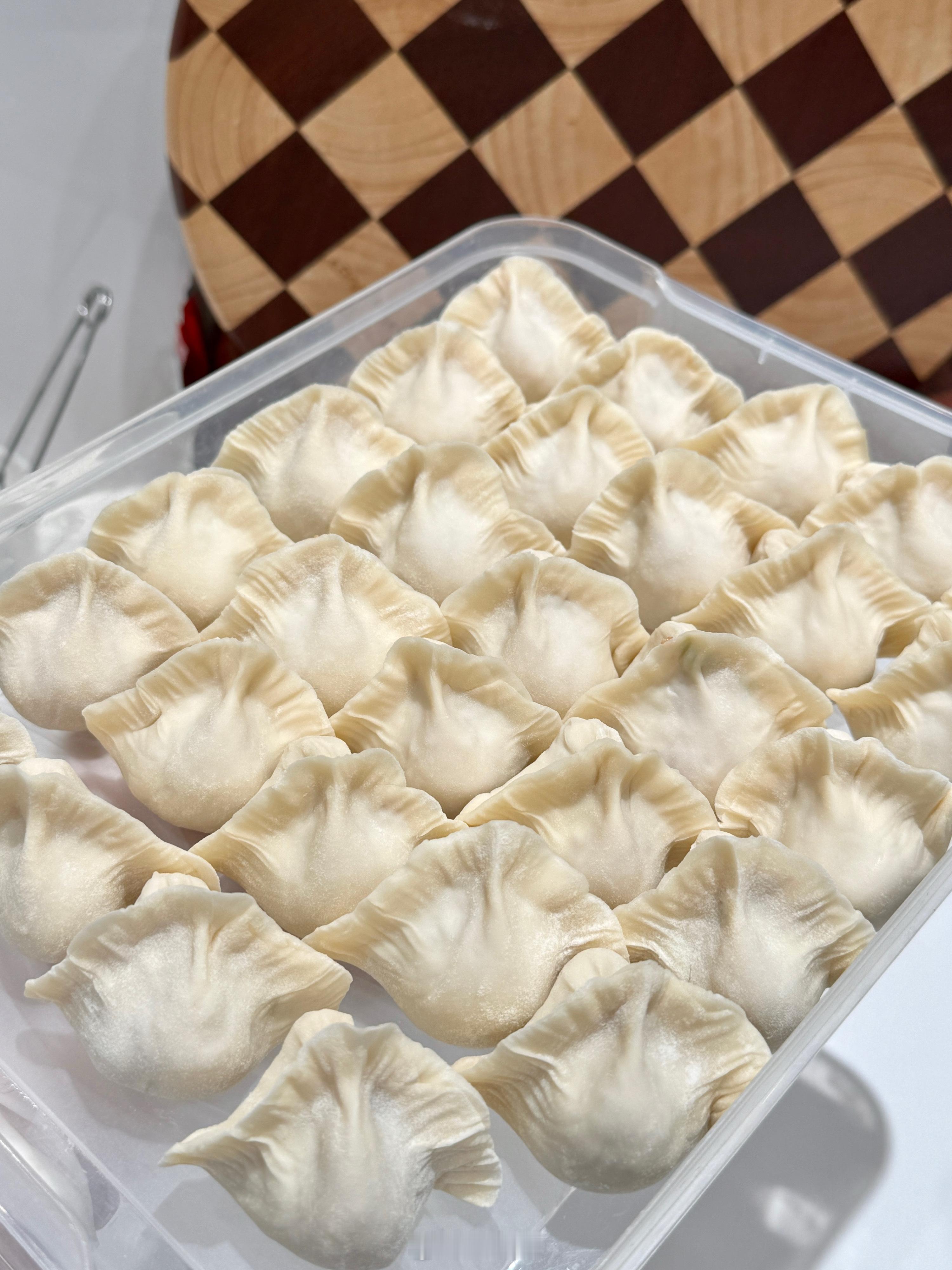 青岛下了一整天的雨[泪奔]雨天 假期 和包饺子很配,之前在外面餐厅吃过一次莲藕猪肉馅水饺,立马爱上!咯吱咯吱的藕丁让饺子吃起来更有趣了!