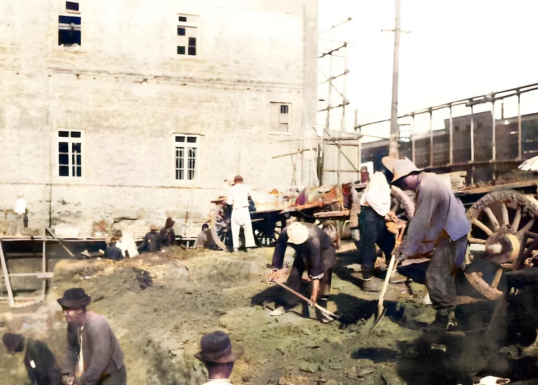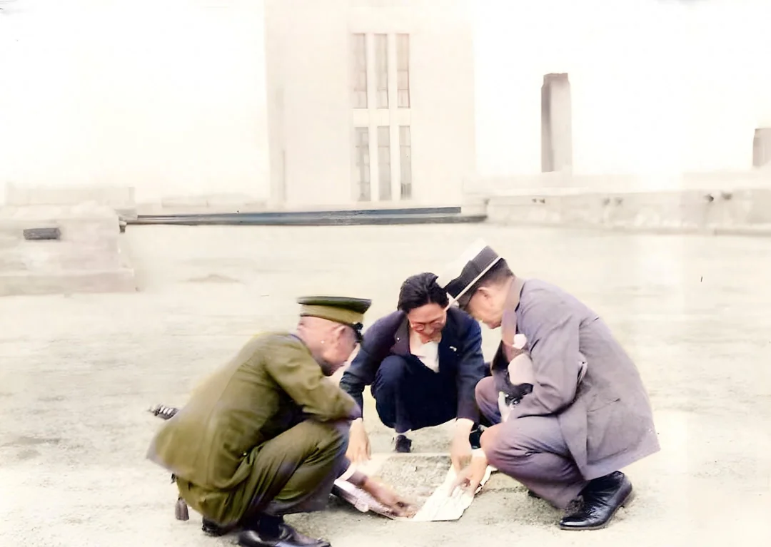最后一张照片是两名日本人和一位美国人在查看设计图纸。当时日本正忙于实施他们的“大新京都市计划”,旨在实现对中国东北地区的长期殖民统治。