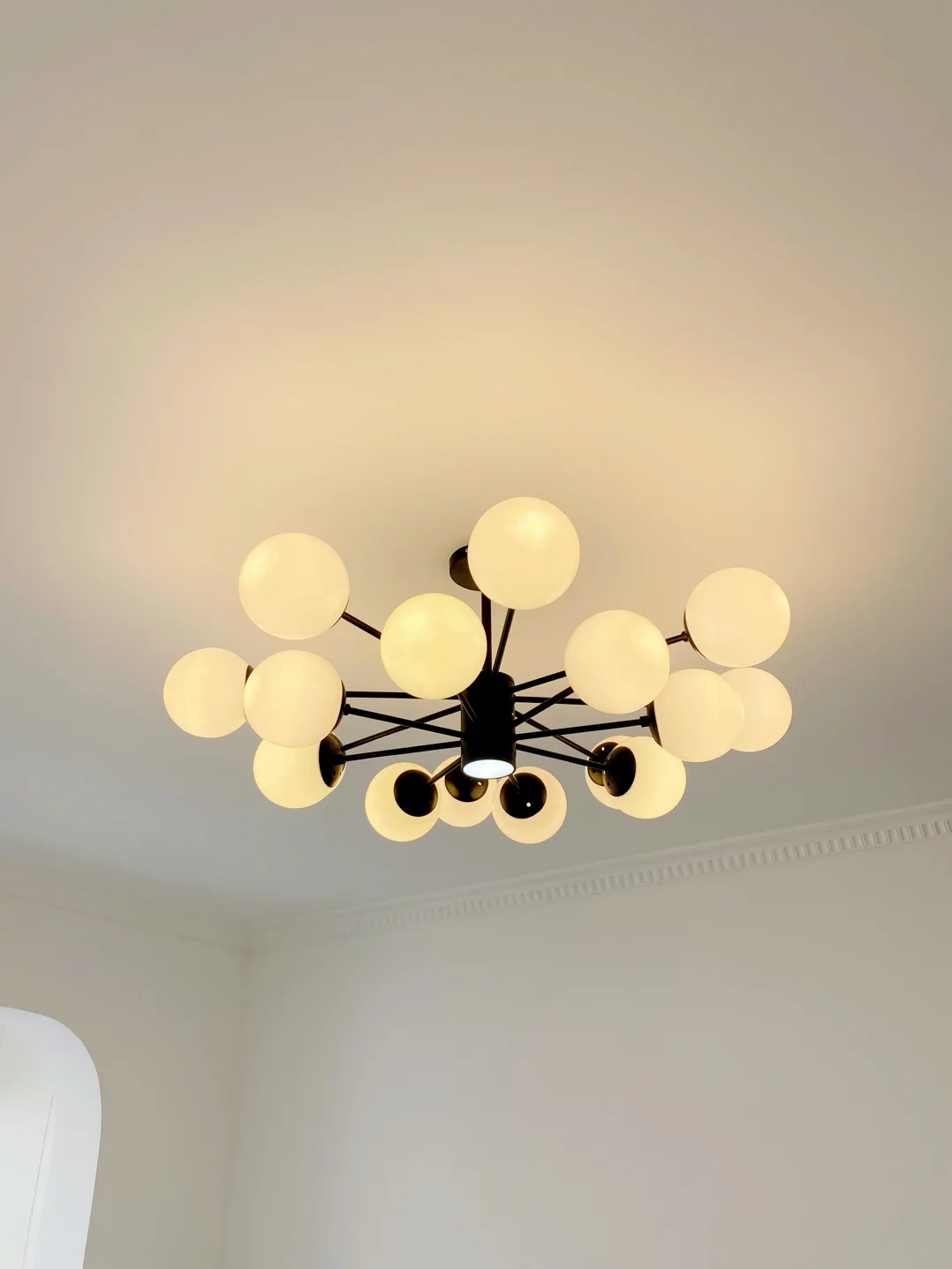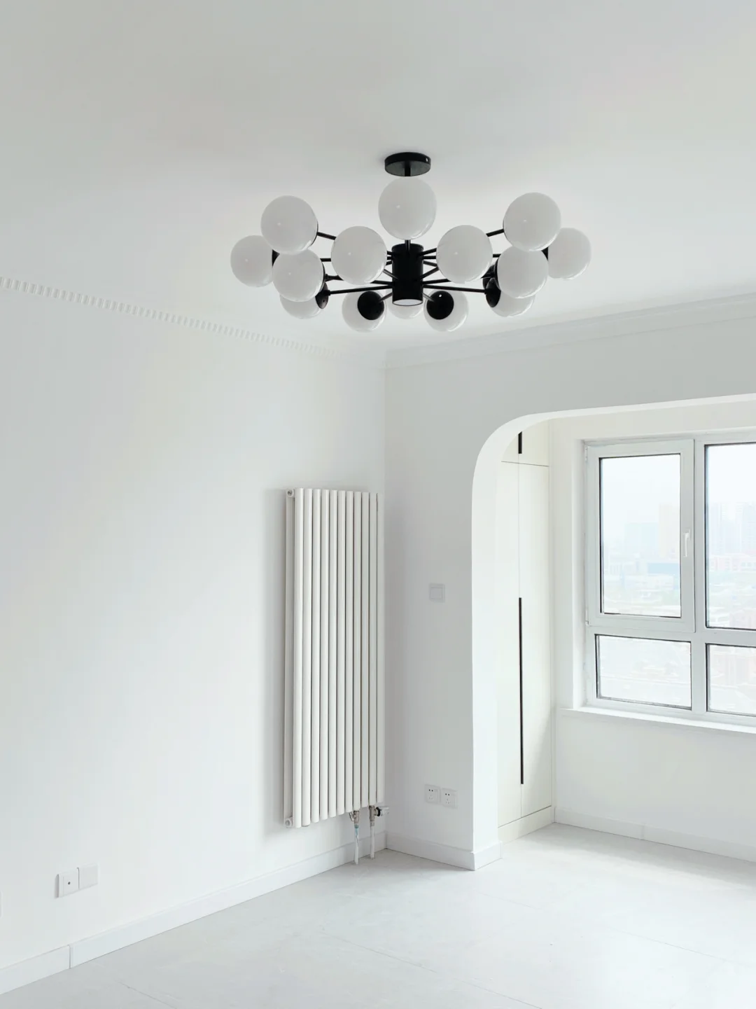 因为没有吊顶所以客厅无射灯筒灯,就买了头数最多的魔豆灯,16头完全不担心客厅会暗,磨砂的灯罩能让光线更柔和,即使头数多也不会刺眼