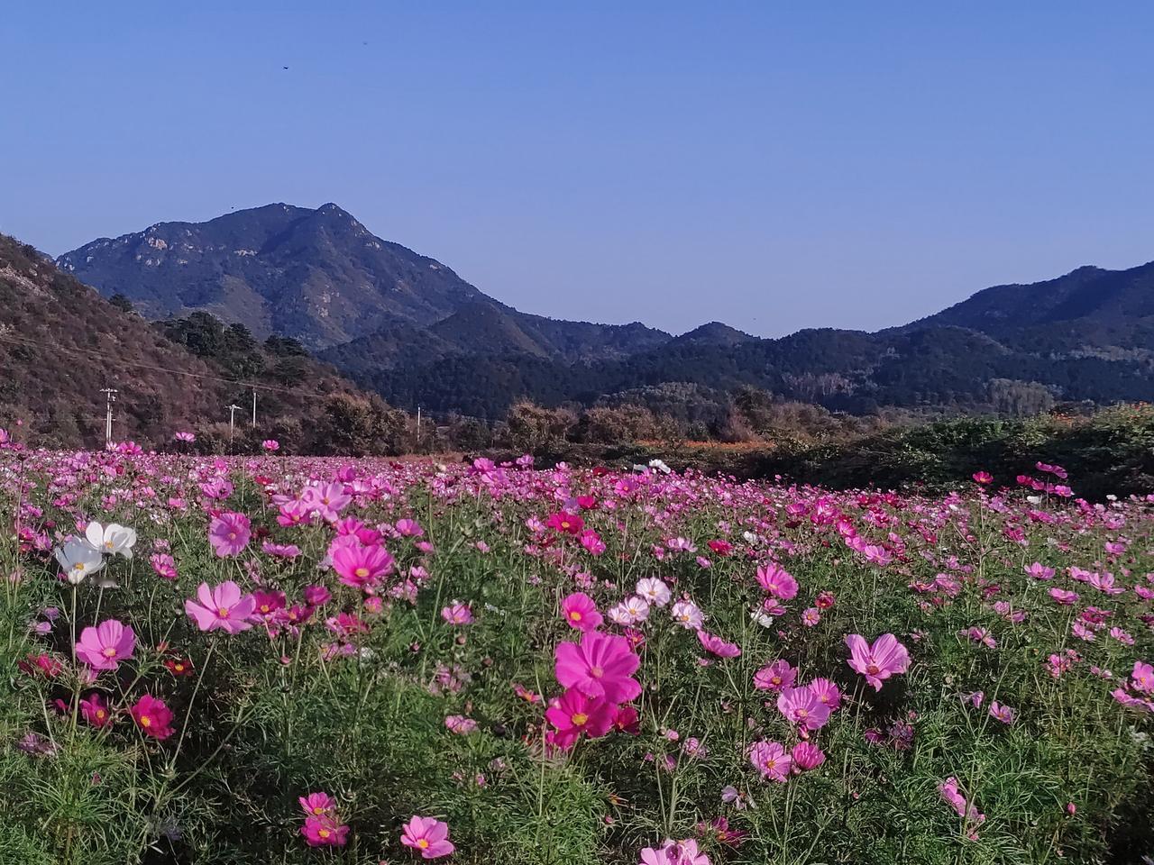 秋阳下,满山秋梅层层叠叠,白得纯粹、红得淡雅,像给群山披上了一件绣着暗香的绒毯。