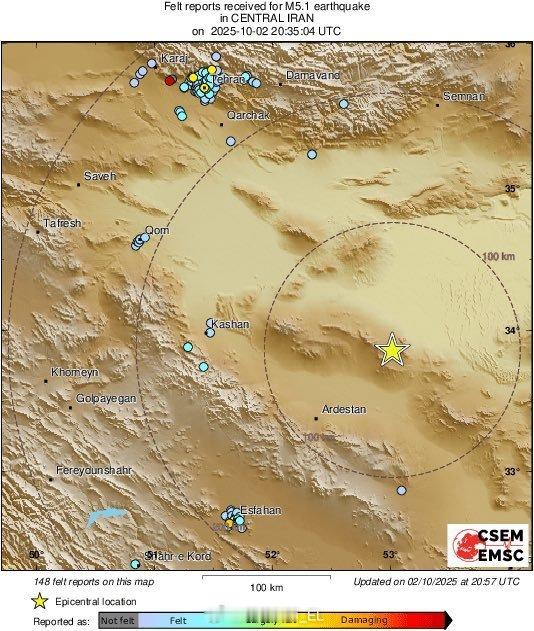 伊朗中部发生5.1级地震。