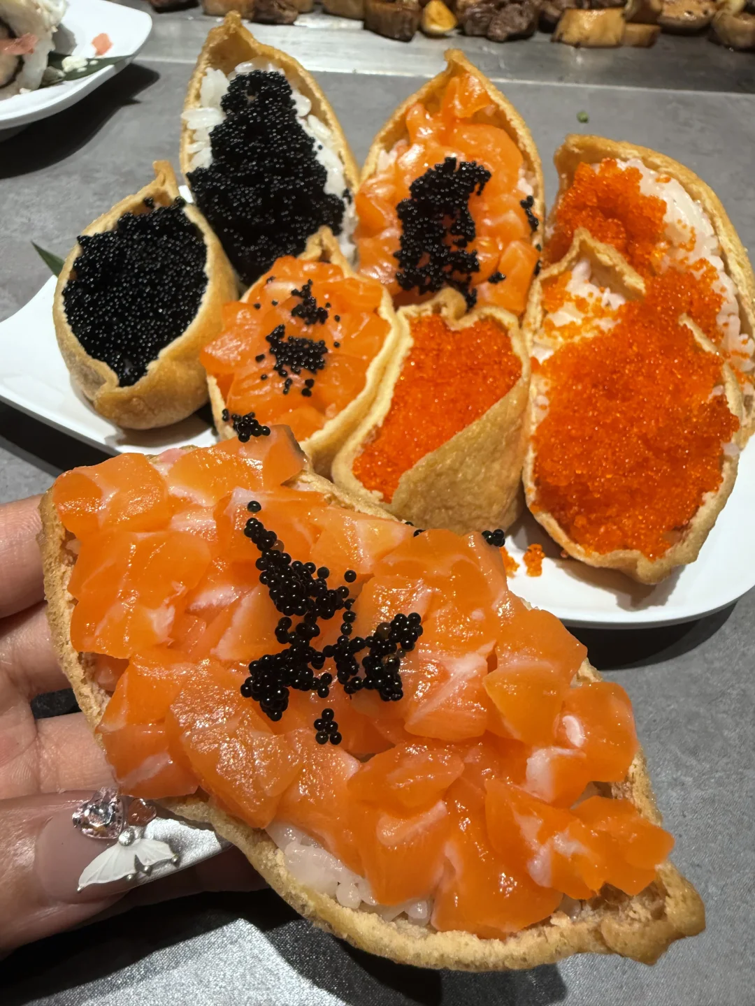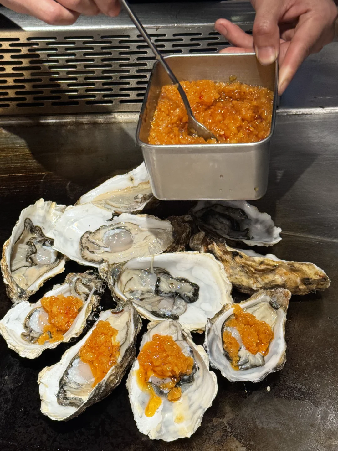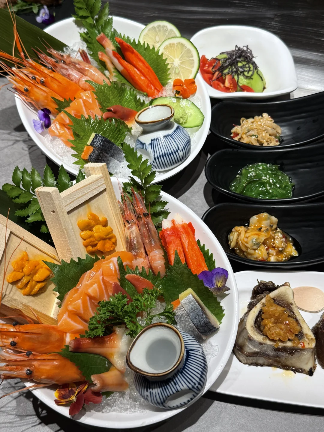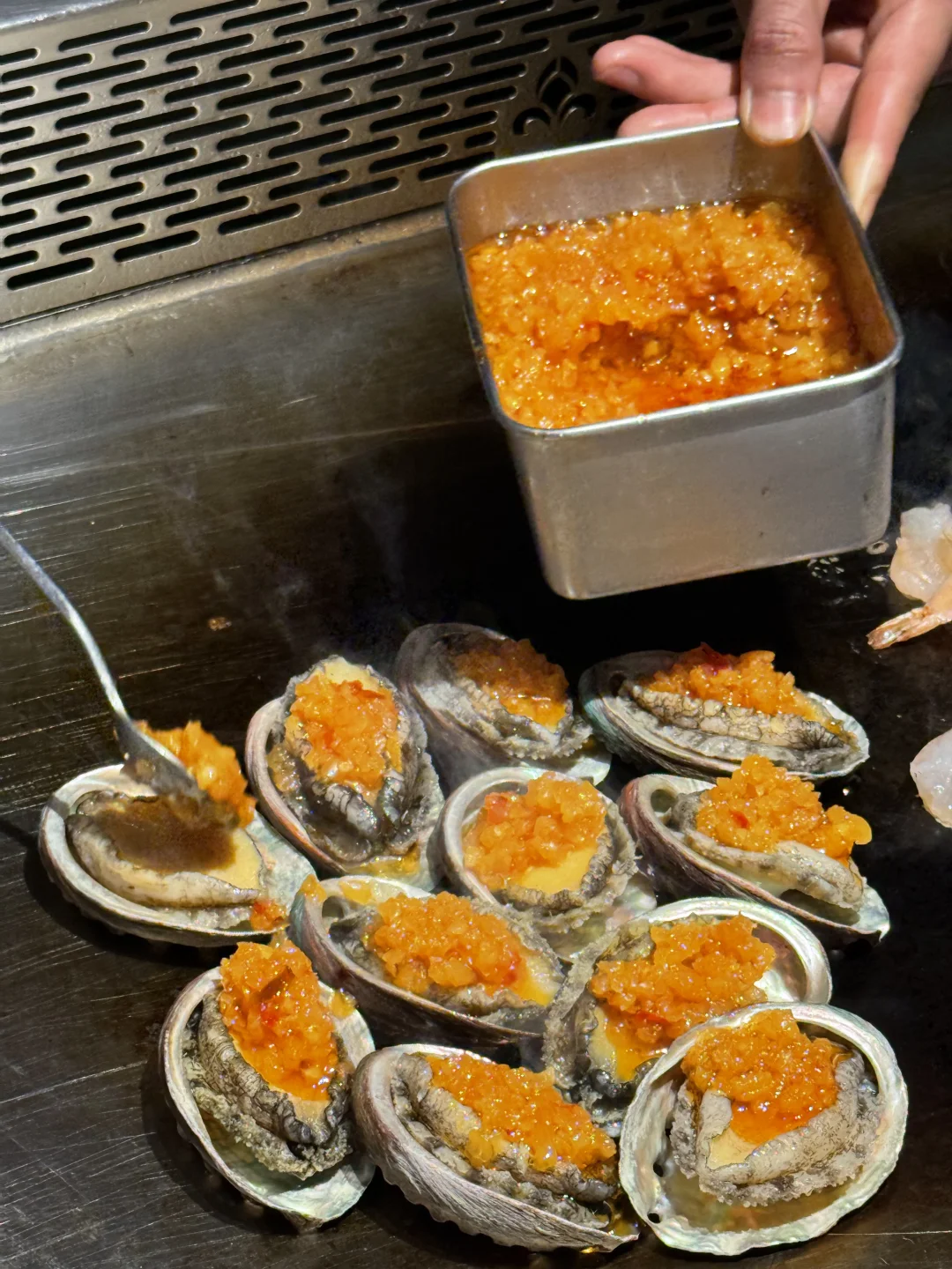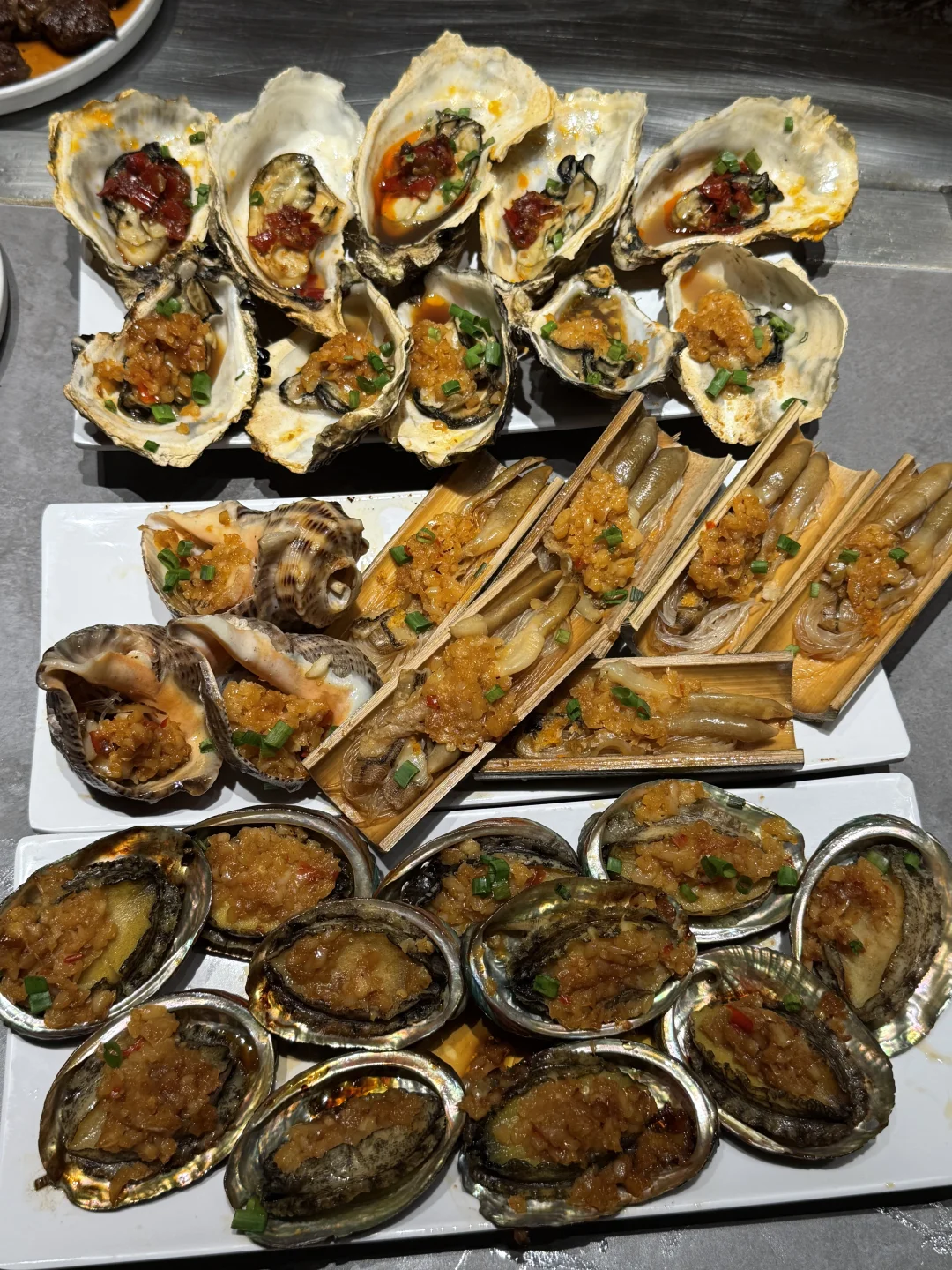 几乎闭眼点不踩雷,土耳其香煎羊排、三文鱼刺身、美乃滋焗生蚝、蒜茸爆鱼、罗氏虾…