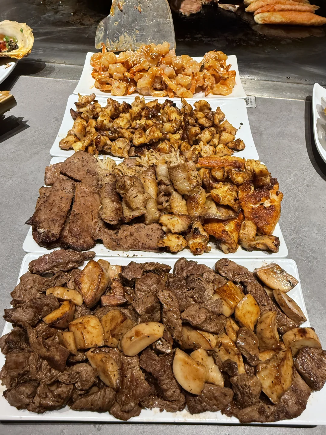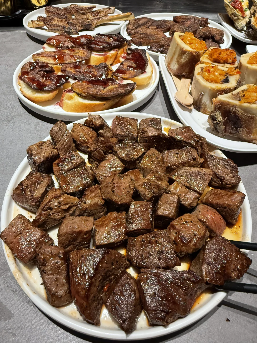 🥩完全实现了厚切菲力牛排自助!牛排品质很ok,铁板炙烤过后外焦里嫩,一人吃了三块特别过瘾…