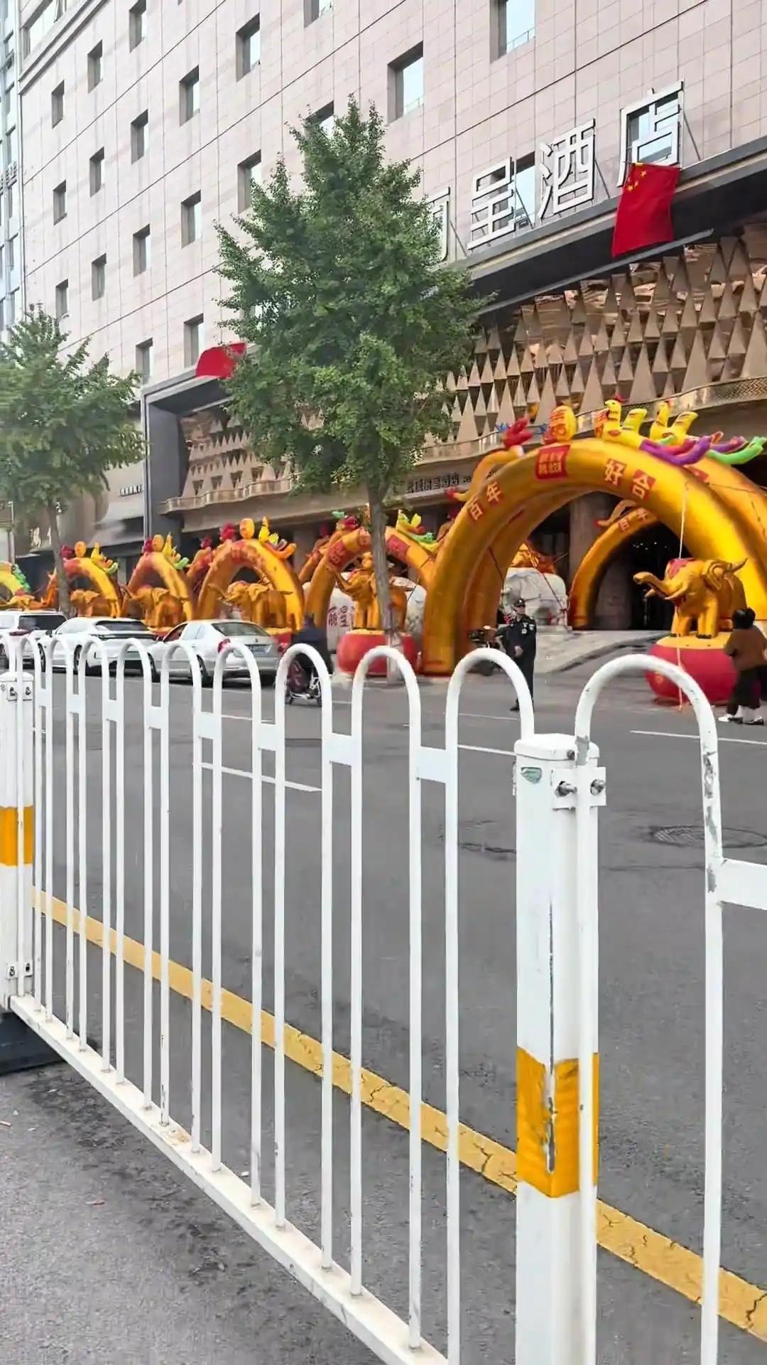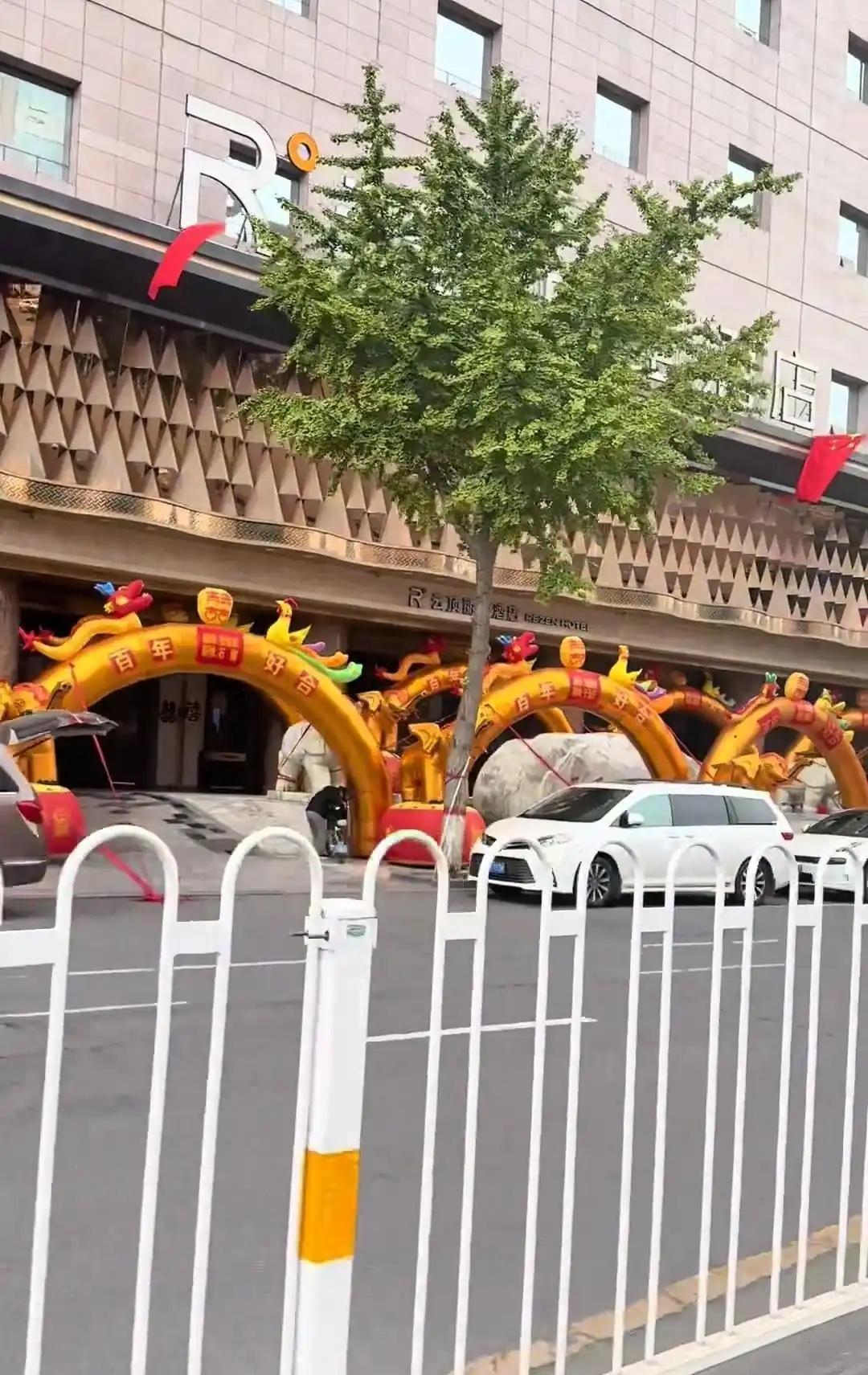 【太原酒店一天11场婚宴?拱门比红绿灯还密集!】 太原某酒店国庆摆11个充气拱门