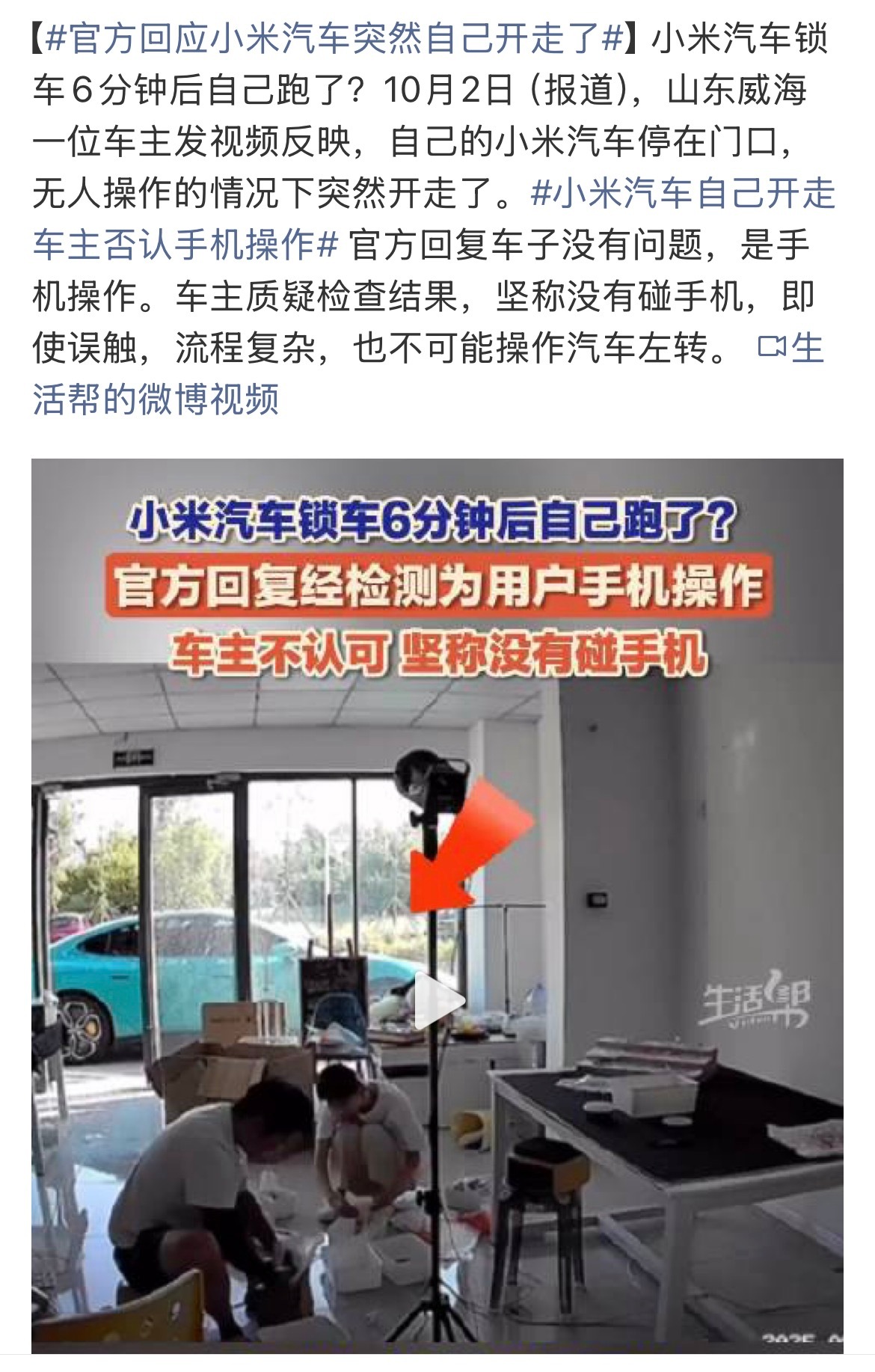 官方回应小米汽车突然自己开走了 官方回复在哪儿?没看到啊。