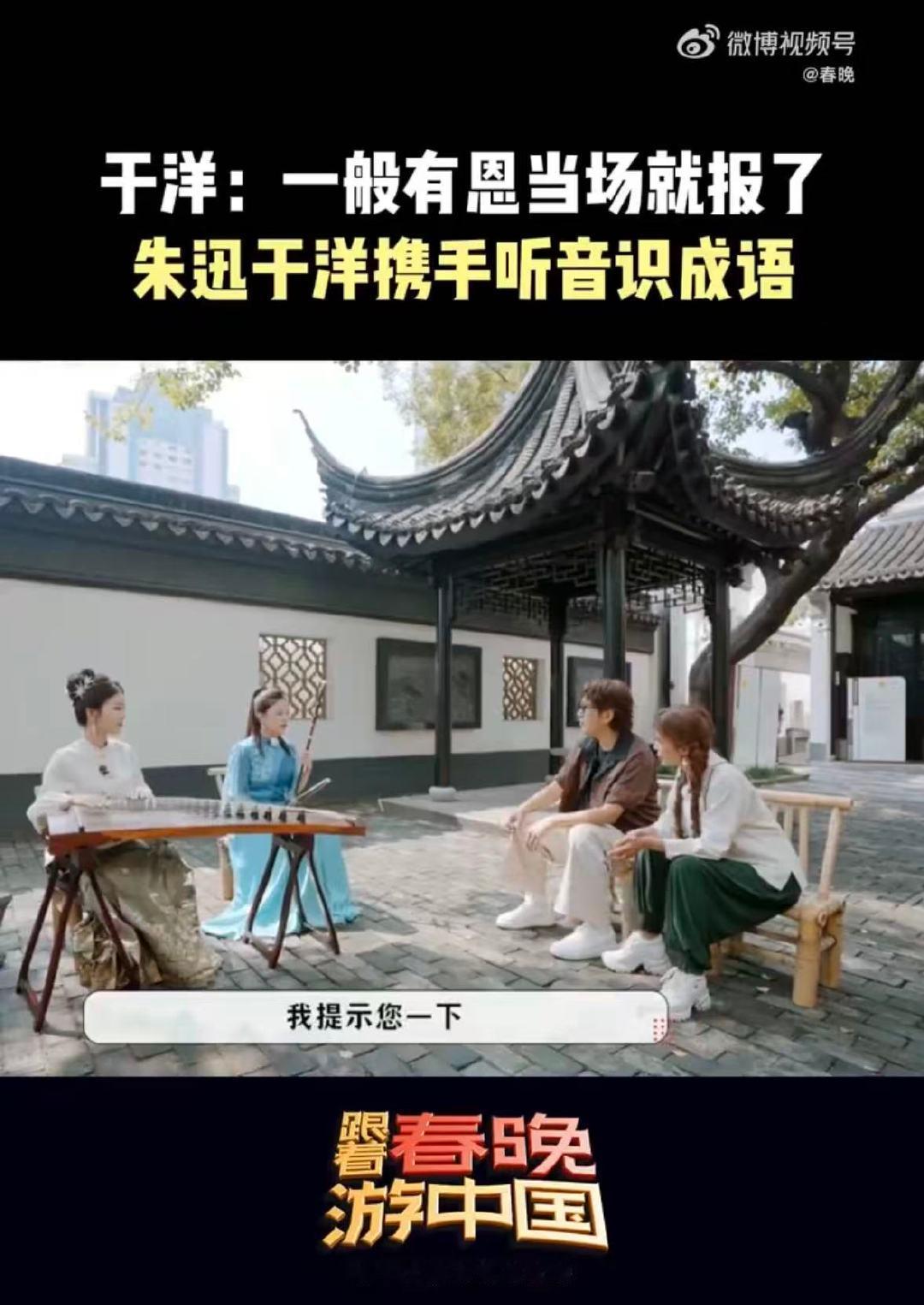 于洋有恩当场就报了跟着春晚游中国 春晚名场面+1!朱迅于洋听音识成语,主打一个“出来混,朋友多了路好走”!