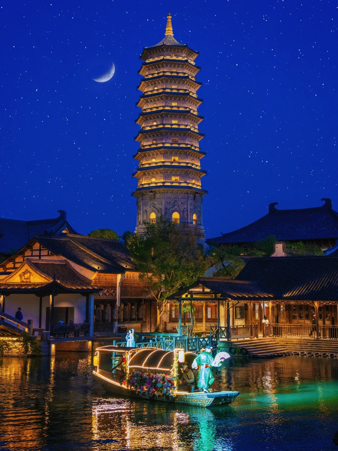 ❹ 濮侍郎码头:蓝调时刻坐花船穿过13座桥看遍两岸风景,感受“舟行碧波上”的诗意,真的好浪漫~