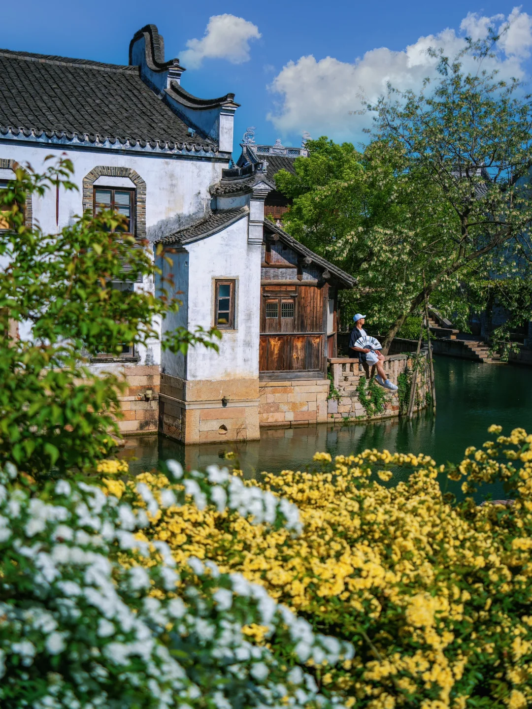 一人漫步其中,不用人挤人,闲逛也很舒服~坐着摇橹船赏两岸美景,小桥流水、香樟柳树、黑瓦白墙、古色木香建筑…这里满足了我对江南春天的各种幻想,怎么拍都好好看~