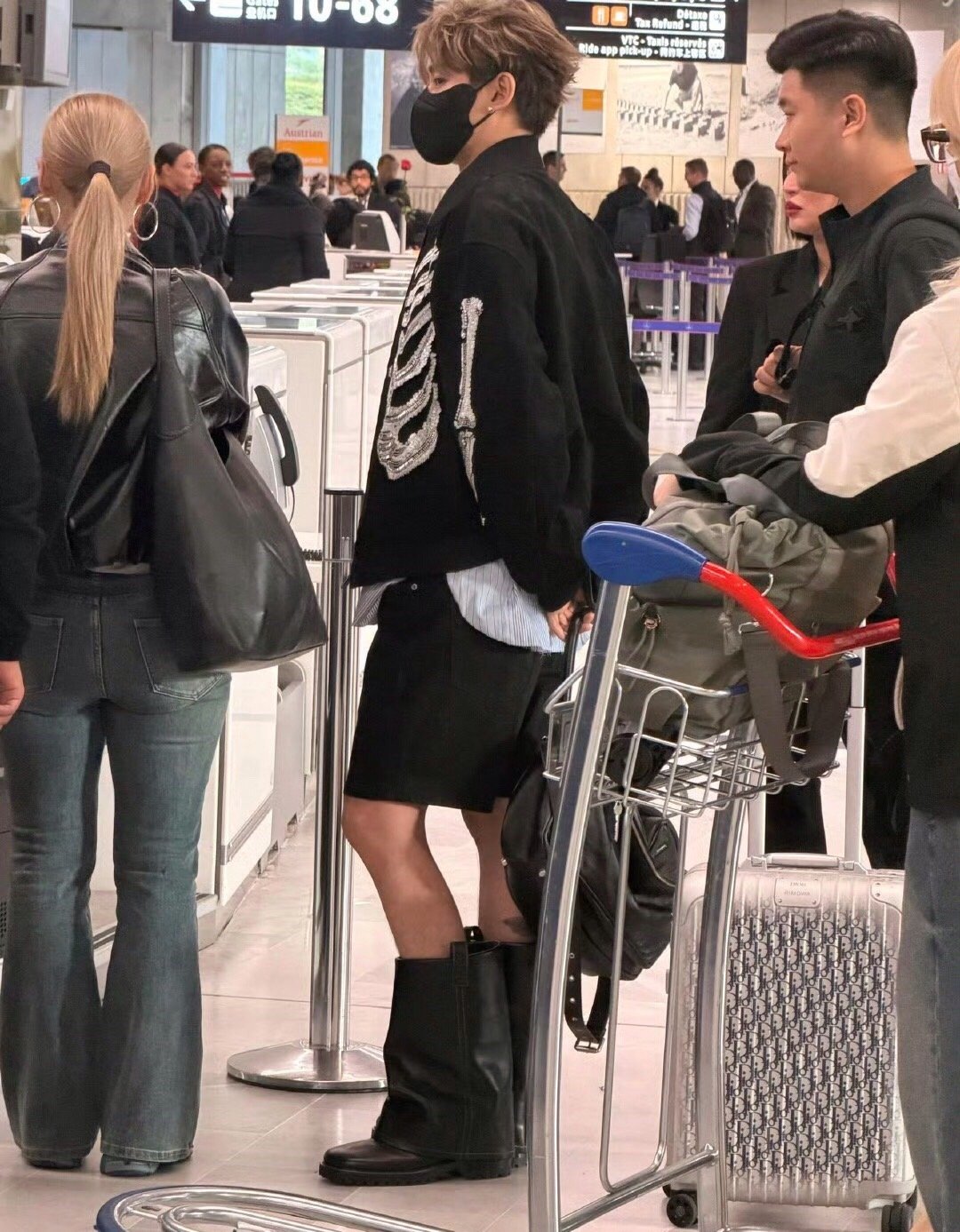 邓为回国潮男感邓为过安检路透,短裤配长靴,私服也是非常潮,口罩遮不住的美貌!​