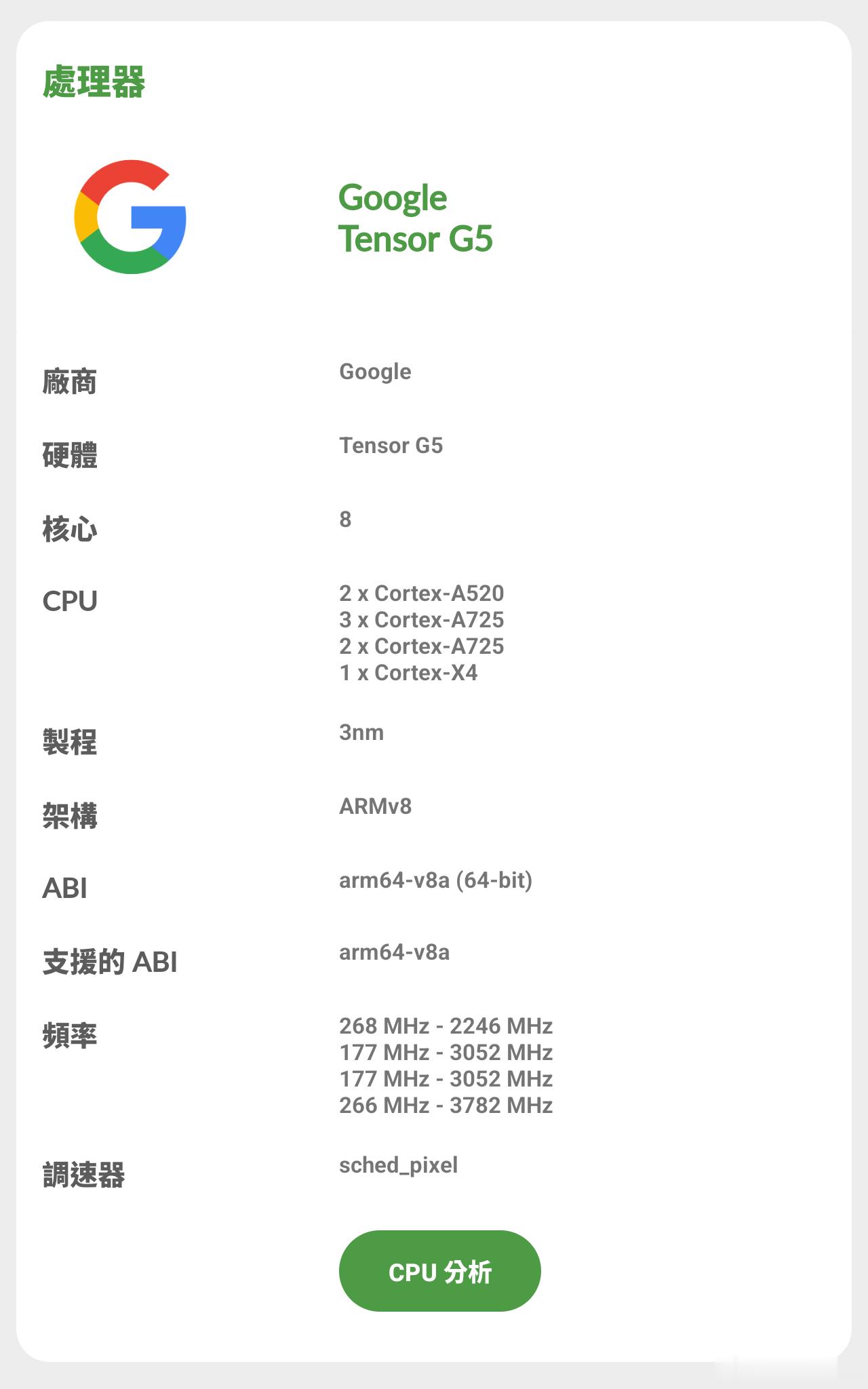 得益于台积电N3P工艺,Google Tensor G5 的跑分虽然落后两年,但是落实到产品,谷歌Pixel 10 Pro 的日常使用确实提升巨大,流畅的不像谷歌Pixel,而且室内空调➕ WiFi 环境下使用,只要你不玩游戏不用相机,基本上完全不会发热,期待谷歌加油,Tensor 早日超越骁龙[doge][doge][doge]
