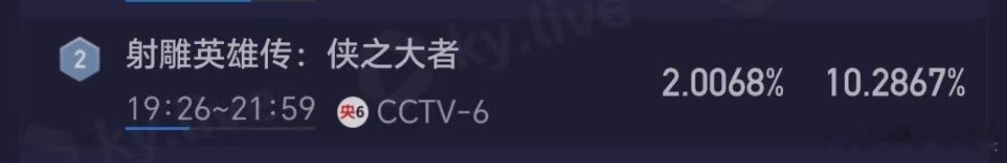 射雕英雄传侠之大者收视率肖战版射雕实时收视破2射雕英雄传侠之大者收视率破2,好棒,[思考][思考]
