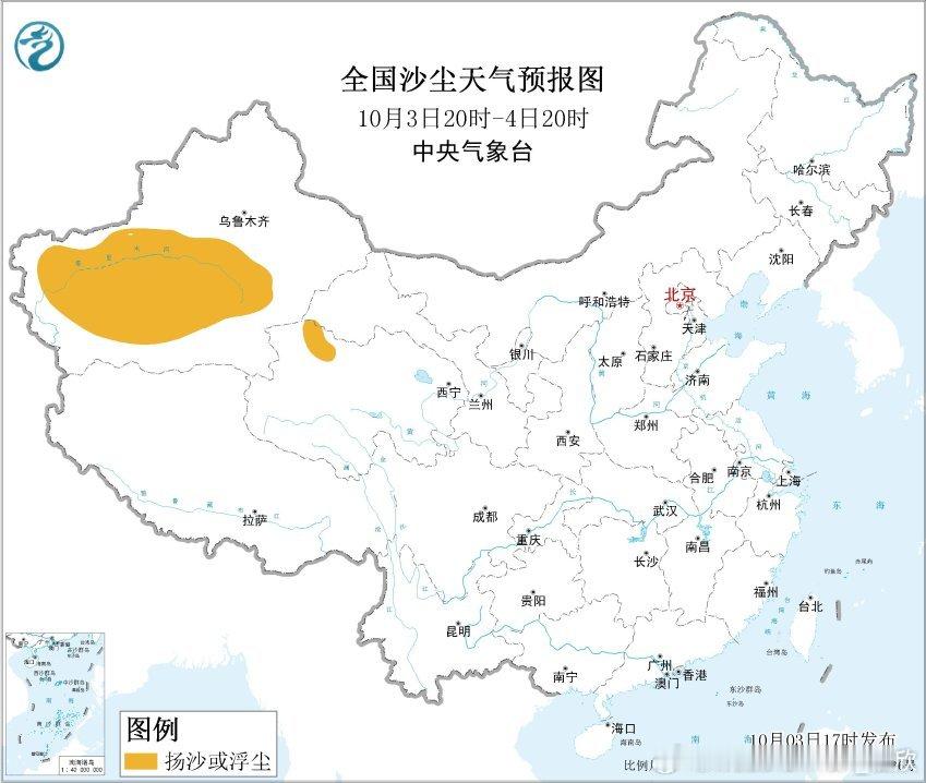 【沙尘和大雾】今晚因为冷空气的东风回流导致新疆阿克苏、和田出现沙尘污染,和田21时的PM10浓度达到了700微克/立方米,出现爆表。今晚到明天,塔里木盆地内部的沙尘会持续。另外3日夜间至4日上午,河北东部、山东中部、辽宁中部、山西东南部、四川盆地东部等地的部分地区,湿度大,可能出现大雾天气,局地有能见度不足200米的强浓雾。