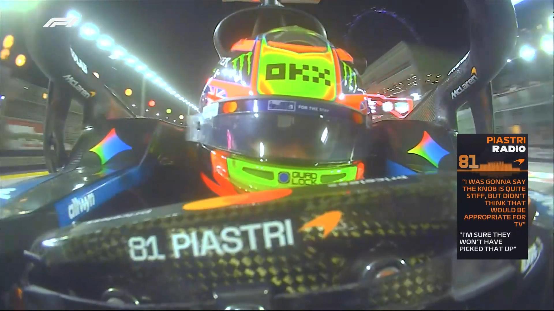 皮亚斯特里:“我本来想说这个旋钮很硬,但觉得在电视上说不太合适。”