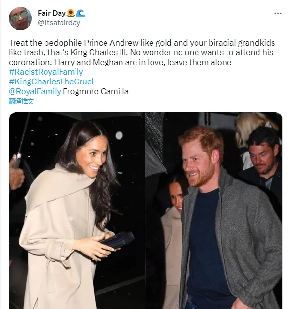 即将登基的查尔斯国王最近突然下令,将他们驱逐出这套房子(其实他们现在已经搬去美国了,所以是名义上驱逐),并且把这套房子送给有恋童癖丑闻的安德鲁王子!
