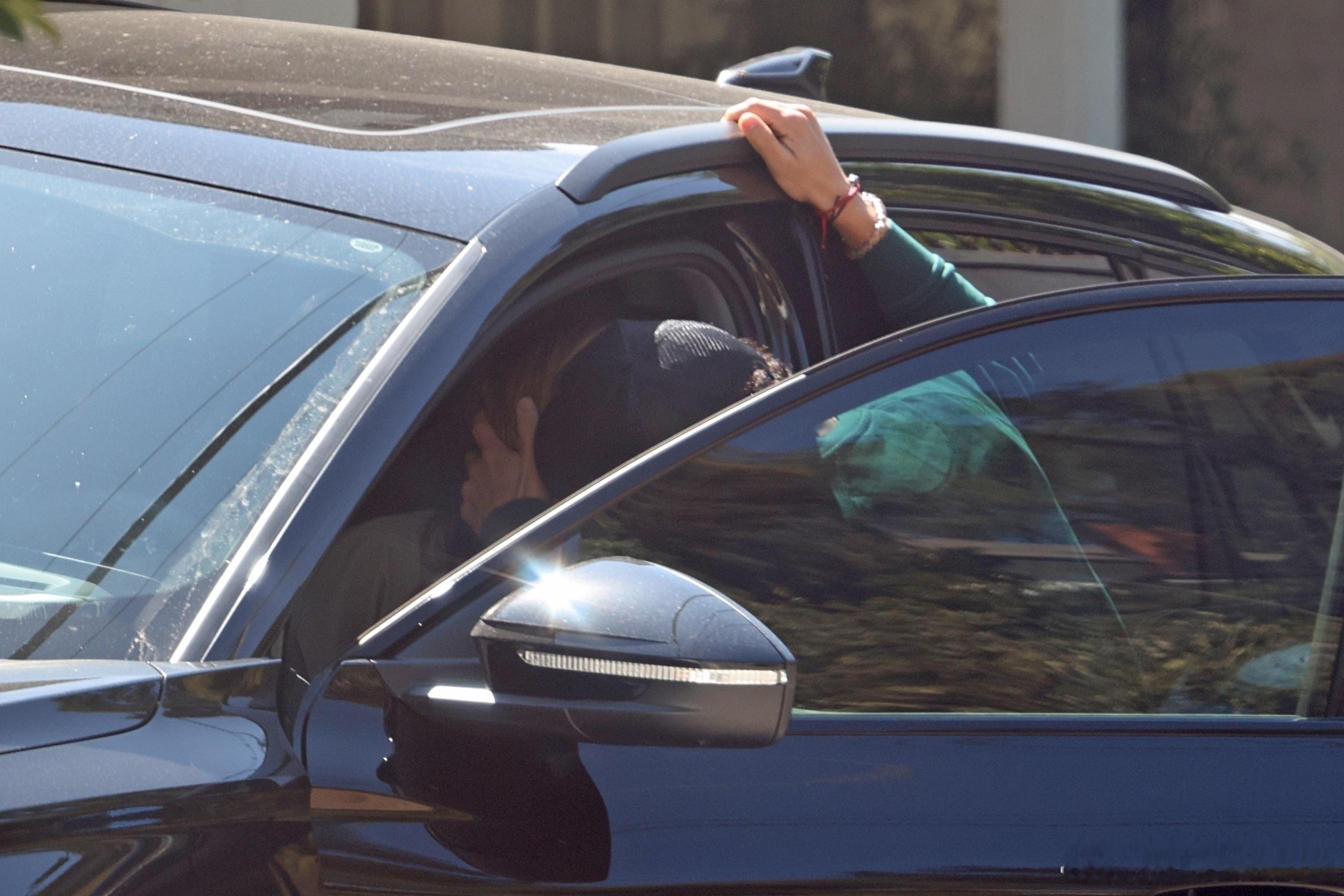 jessica alba杰西卡阿尔芭在洛杉矶外出驱车前往男友Danny Ramirez的家,Danny在门口迎接顺便送上一吻