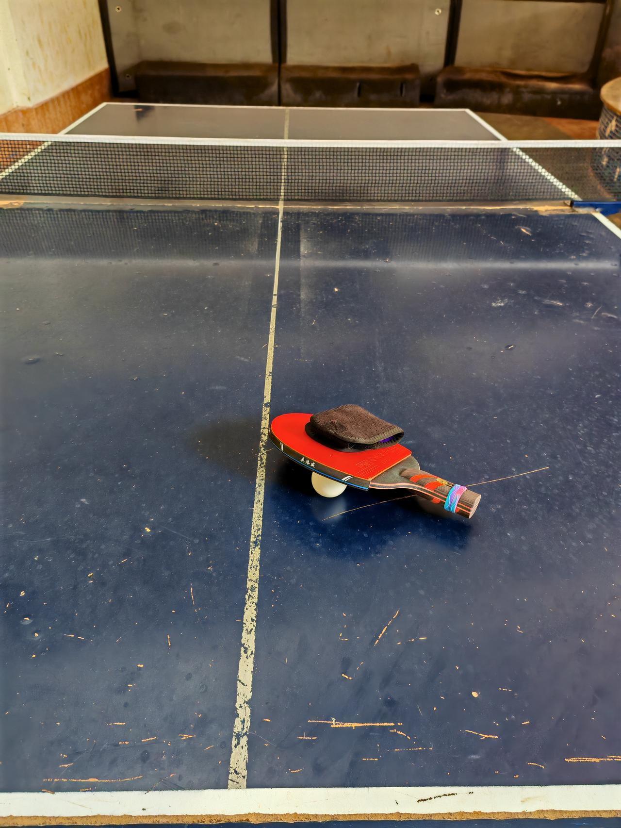 换球桌啦!开心! 我旅居的小区可以打乒乓球,可以交友:陕西的、湖北的、福建的、广东的、云南地州县的球友都有。 在这旅居打了近十年的乒乓球,乒乓球桌子都打起泡泡啦(图四),今天终于换了新桌。 换了两张球桌,还是有三张桌子可以同时打球,淘汰两张球桌搁在空处,人多时还是能凑合着打。 换球桌是每个球友自愿掏钱100元助力,新球桌打球的体验感觉真不错,有弹力,不反光,所有人球友应该要涨球了吧哈哈。 最近除了每天下午和球友打球,回家就是看球,看中国大满贯球赛。 看球赛时间变短,心情即放松又紧张,多了份纠结也就多了份陪伴, 昨晚莎头拿下第一枚混双冠军太开心啦,一如既往地支持莎头!看好莎头! 新球桌,愉心情,但愿一切烦心事、糟心事可以抛却脑后。 继续关注中国大满贯球赛![耶] 户外乒乓球台桌