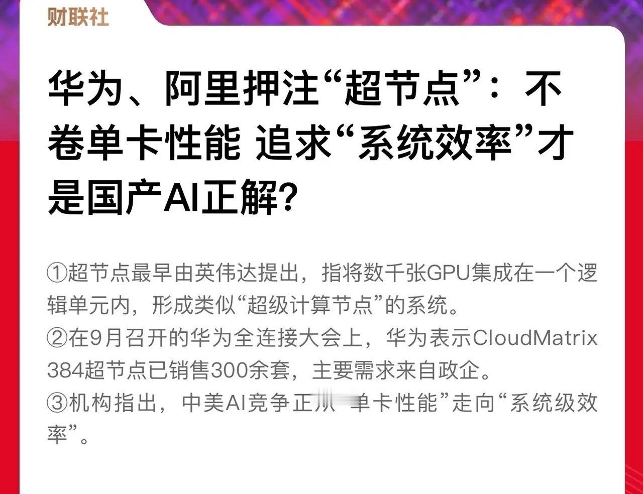 华为、阿里Ai战略高度一致:超节点。