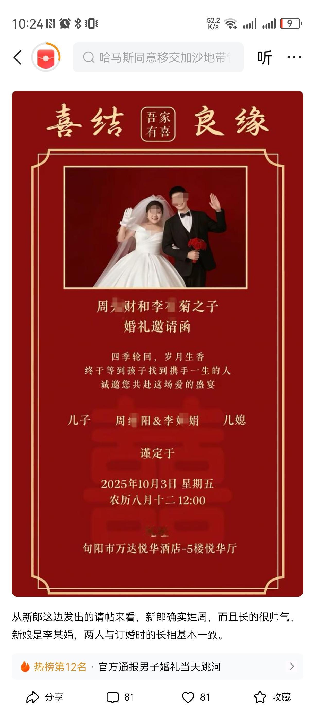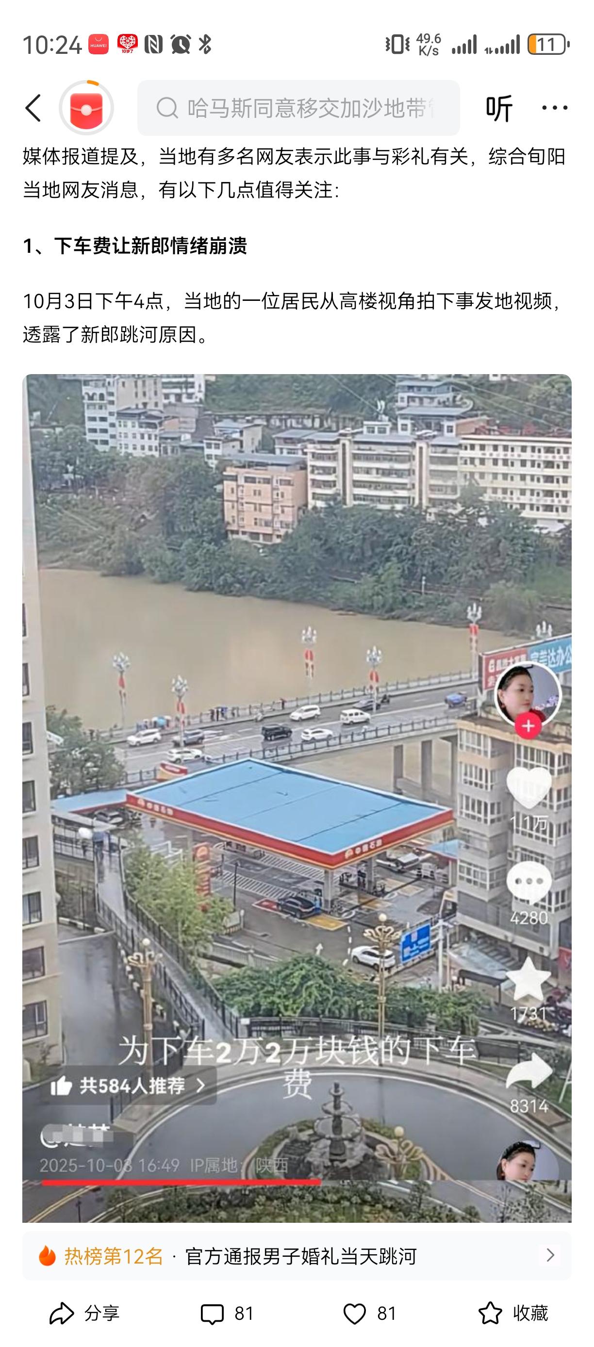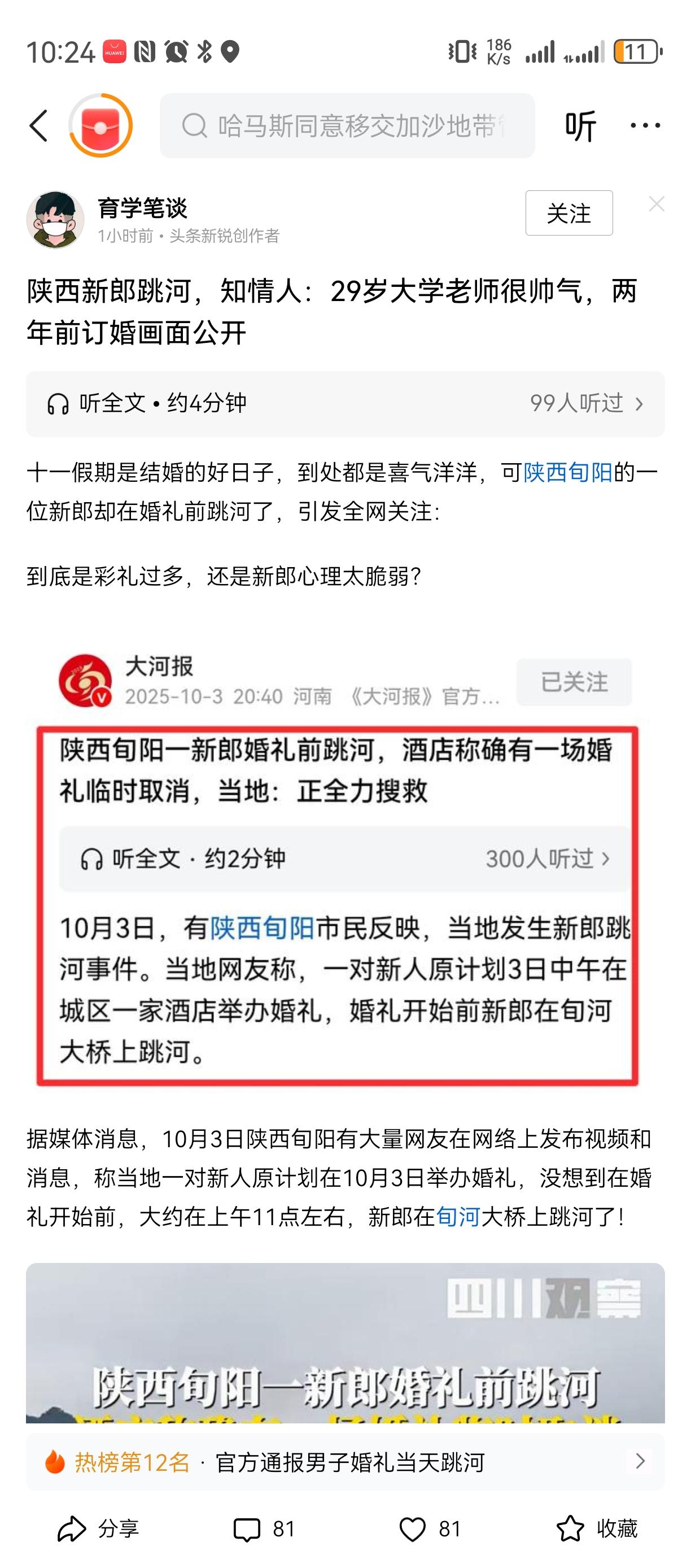 假消息! 昨日因为临时加彩礼的新郎是高知? 还是大学教师? 不可能吧, 大学里什么样的女生没见过? 彩礼过高问题 这种要彩礼的直接不要🙅 何必还搭上自己的性命 留下父母白发人送黑发人! 三万元不就是一点工资?情侣彩礼
