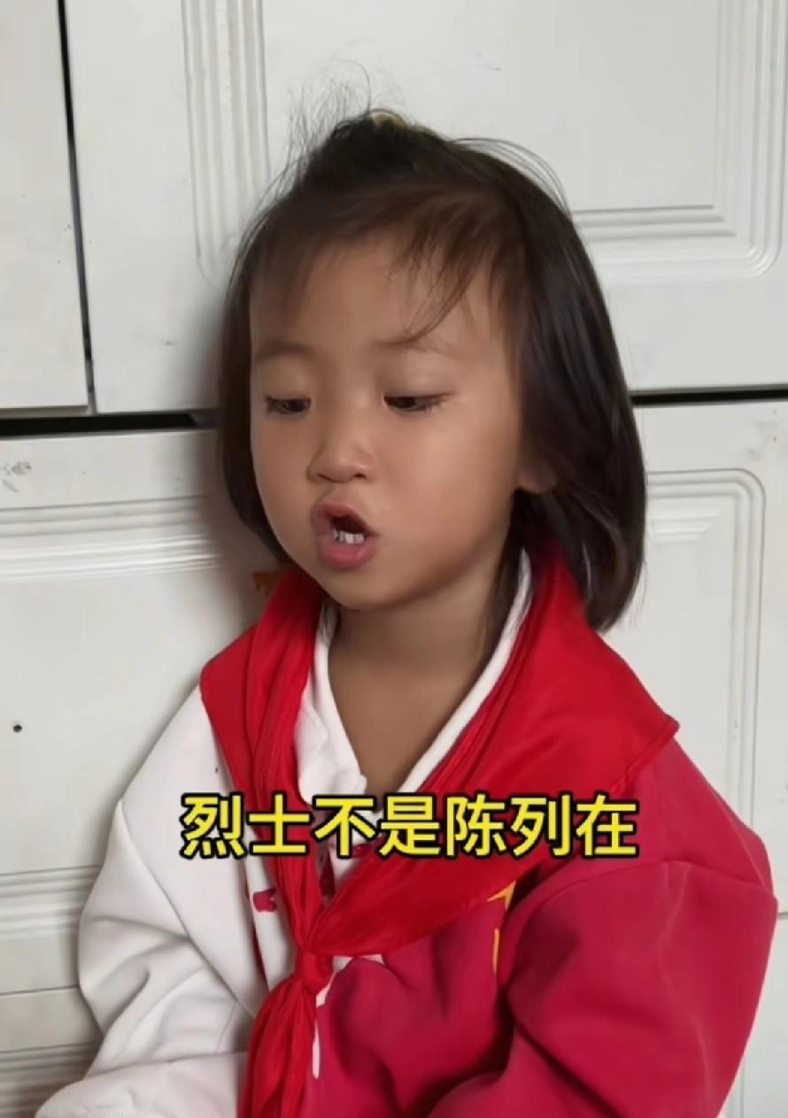 快五十岁了,三岁多的小满儿告诉我9月30日是烈士纪念日。终于恍然明白,我们当地为什么在这一天组织到烈士陵园缅怀先烈。还以为是为国庆进行的仪式感,原来这天是烈士纪念日! “烈士不是陈列在历史里面的标本,而是流动在民族血液里面的图腾!总是说岁月静好,却鲜少细想,这静好是无数生命用不再见换来的,他们还未来得及看如今这万家灯火,他们未完成的人生,变成了脚下的地和头顶的天空,手中的安稳~~~”被这小萌娃的一番话给打动了,小满儿的深情告白,比我们成人的内心更深刻,更炽烈。[赞] 咱们要记住,烈士用生命铺就的路,我们要走得更稳; 咱们要记住,烈士守护的每一寸国土,咱们都要匹夫有责,守得更牢固; 咱们要记住,在这和平年代,虽不需要抛头颅洒热血,但是要在平凡的岗位上把平凡的事情做好,这就是不平凡,就是守护岁月静好的默默呈现; 咱们要记住,国是最大家,家是最小国,把家庭营造好,把孩子教育好,把工作生活中的事情做好,就是给予先烈的最好回馈和回报!这是民族精神传承的延续,更是对烈士最深的敬意表达! 感受到了小满儿的一身浩然正气,接收到了满宝与生俱来的爱国情怀!祝福祖国,致敬先烈![祈祷][祈祷][祈祷]#小满儿# #小满儿经典语录# #小满儿金句# #小满儿成长日记# #烈士日#