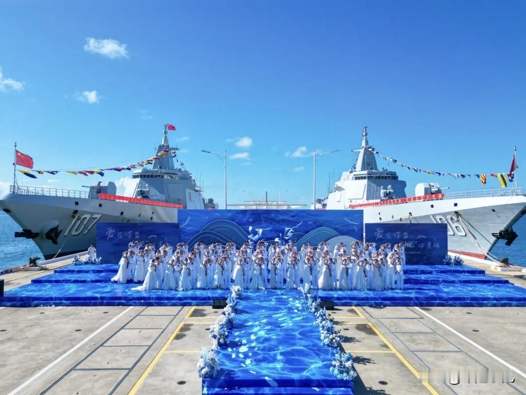 万吨大驱×2,当作背景,这婚礼排面太大了…… 南海舰队,集体婚礼,50对新人,在万吨大驱的见证下,而且还是2艘,106和107!圆满礼成!这排面真的太大了,太幸福了,为他们最真诚的祝福👏👏👏,选择海军作为自己的另一半,不会有错的,恭喜50个姑娘正式成为军嫂! 另外,根据车头漆描述,上午举办的集体婚礼,下午所有舰船就出航了,因为台风要来了,要出港避风,我之前一直以为,台风来的时候,舰船在港里是最安全的,没想到居然不是这样…… 大家觉得怎么样?评论区说说!海军婚礼