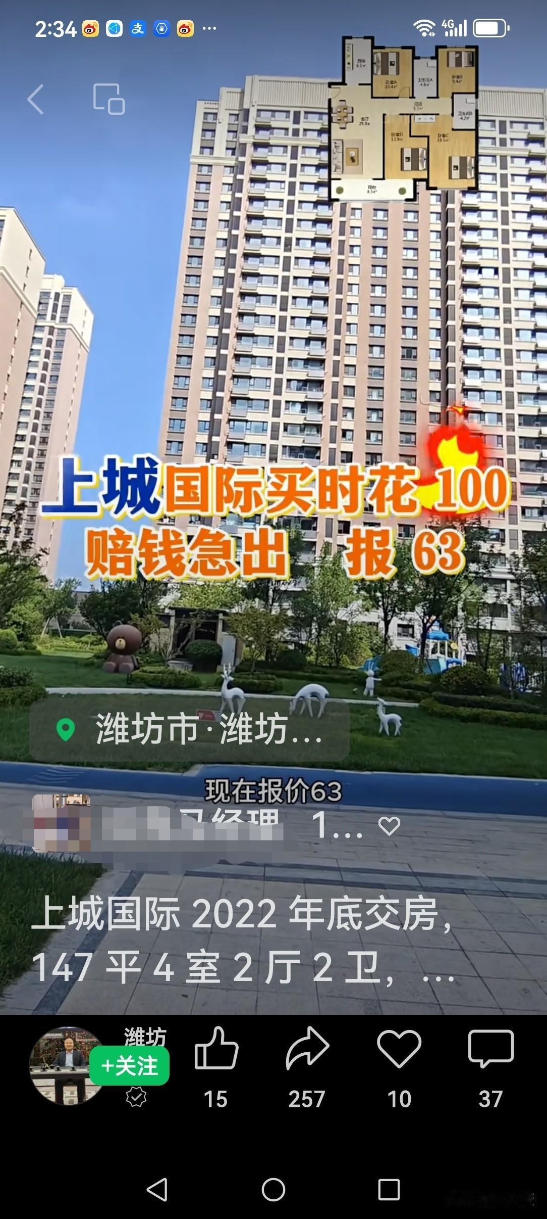 走马观花,看潍坊十一国庆楼市现状。 十一国庆期间走访了潍坊各个楼盘,给人的感觉是稳中有降,开发商给出的优惠层出不穷。 高新区。高新区的房价也降下来了,金马路健康街 这个位置的新建商品房价格6999多加1万还带10万的家装还是现房。 奎文区文化路上的楼盘, 优惠力度更大,买三室送一室的活动更加实惠。 潍城区的奥体片区,多层洋房5000多一平方,高层4000一平,送地下室送车位。 潍城区的区政府板块,新建商品房3000多一平方还是现房带精装修。 现在的潍坊楼市出现了两极分化,位置好,户型好 的房子价格比较坚挺。 位置偏远。在近郊的楼盘 价格低但依然无人问津。 现在潍坊的二手房则是一片哀嚎,很多二手房是有价无市,真实的成交价和挂牌价相差十几万,想卖出一套二手房,你不割肉根本没人买。 但有的房东还没有认清形势,挂的二手房价格比新房还高,这样的房子不降价卖出去是很难的。 我们普通老百姓只要有房子住着,房价的下跌和上涨其实影响不大,对有多套商品房的业主影响还是蛮大的,因为随着房屋价格的下跌,其资产缩水是不争的事实。